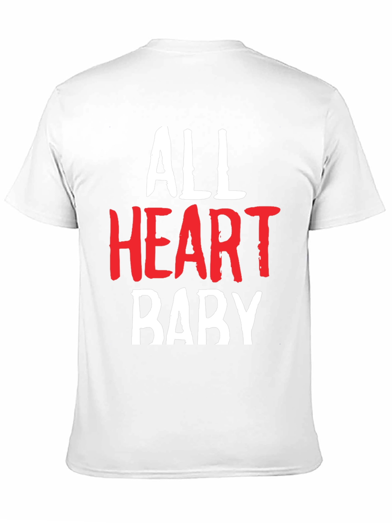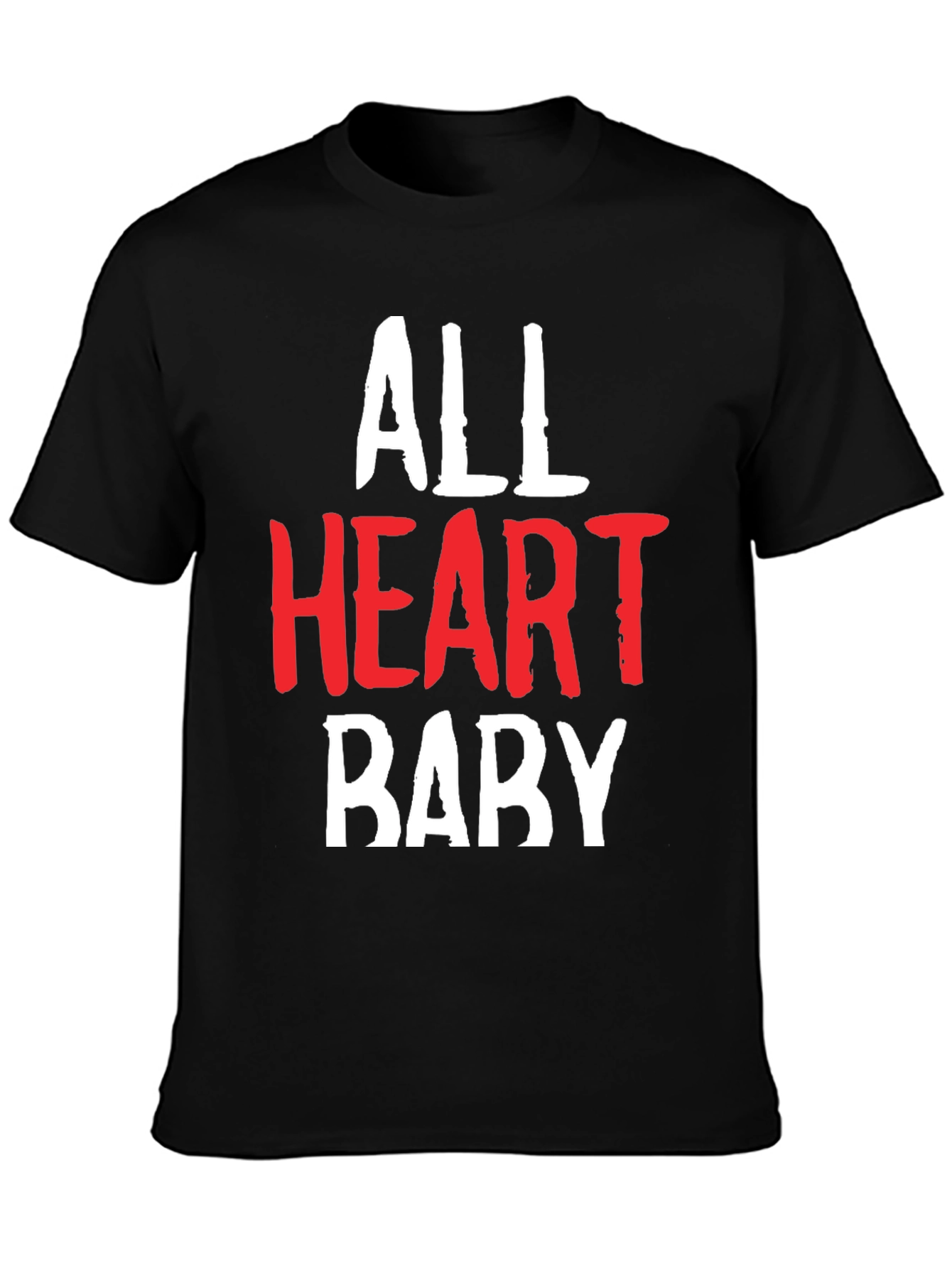 Muestra tu lado más tierno con esta camiseta negra de algodón suave. Presenta un diseño llamativo con las palabras "ALL HEART BABY" impresas en letras grandes, destacando "HEART" en un vibrante color rojo que evoca pasión y amor. Perfecta para expresar tu personalidad optimista y afectuosa. Ideal para usar en citas casuales, salidas con amigos o simplemente para un día relajado en casa. Combina fácilmente con jeans, pantalones cortos o faldas. Esta camiseta te asegurará un look cómodo y lleno de estilo. ¡Un regalo perfecto para esa persona especial!