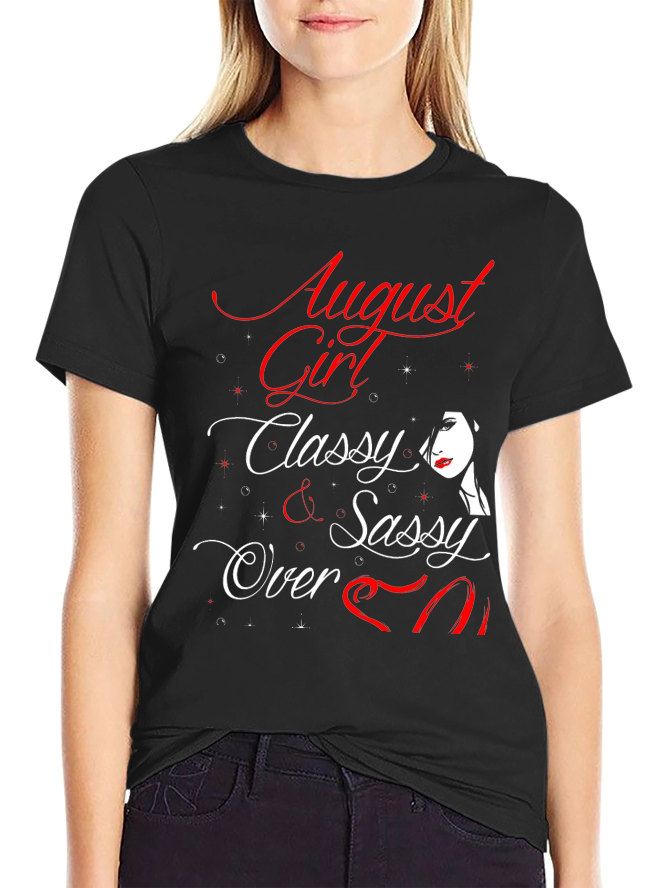 Luce con orgullo tu mes de nacimiento con esta camiseta negra de diseño llamativo. Presenta la frase "August Girl Classy & Sassy Over 50" en elegantes letras rojas y blancas, acompañada de un sutil dibujo de una mujer con labios rojos que añade un toque de sofisticación. Perfecta para mujeres nacidas en agosto que celebran su vitalidad y estilo. Esta camiseta es ideal para uso diario, reuniones informales o como un regalo especial para esa amiga o familiar que cumple años en agosto. Su diseño único y mensaje empoderador te harán destacar con confianza.