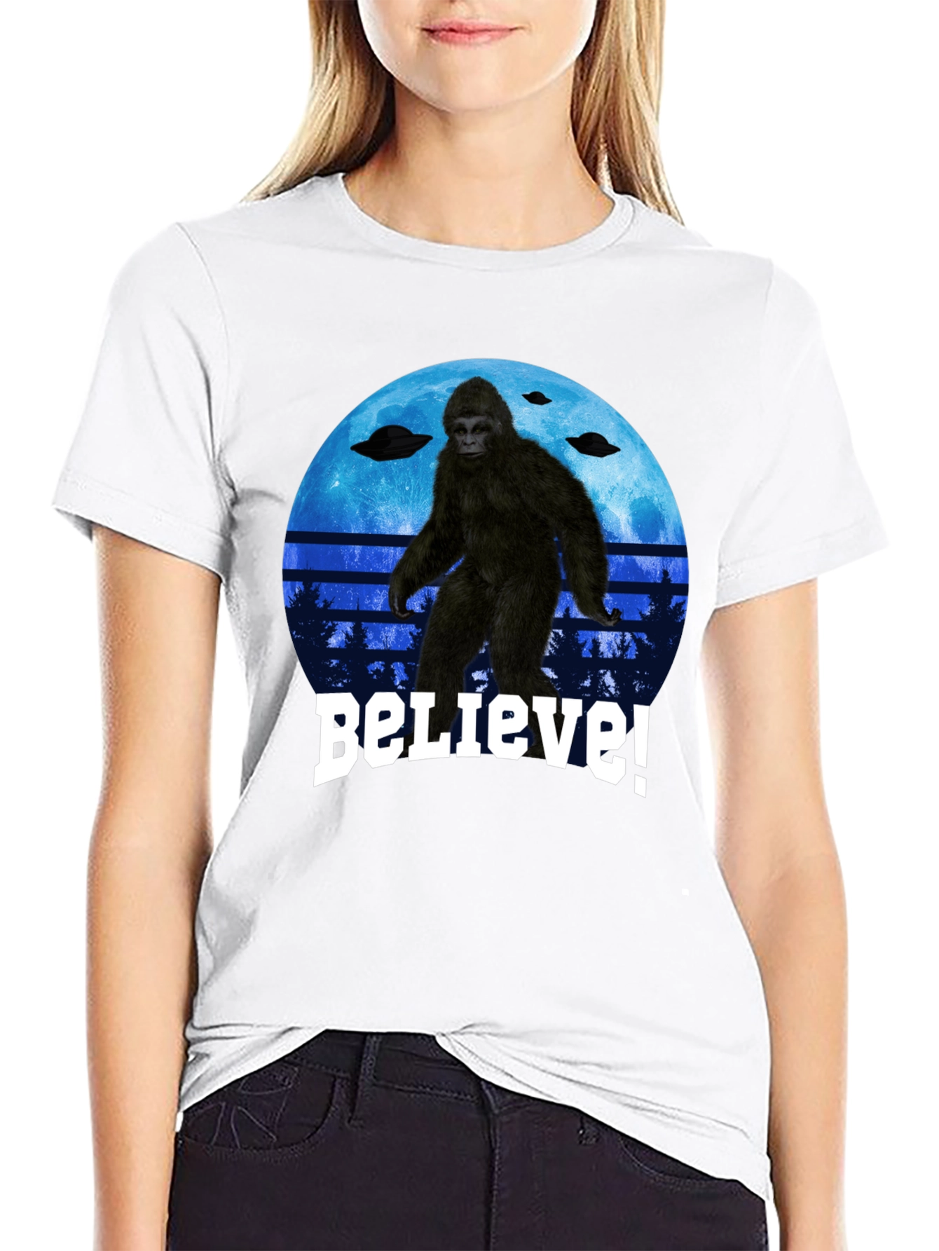 Camiseta Bigfoot Believe - Diseño OVNI y Luna Azul