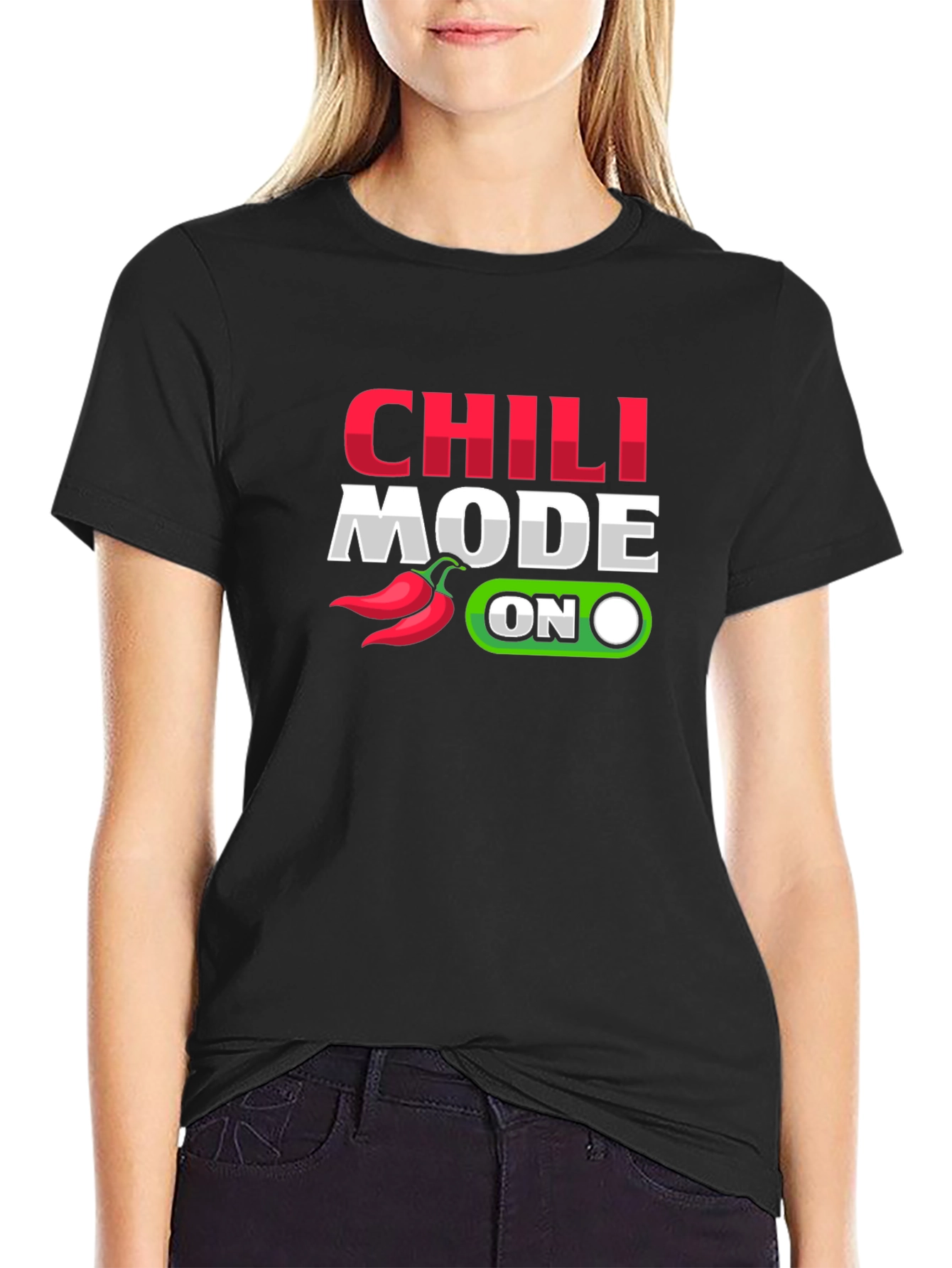 ¡Enciende tu día con esta camiseta de diseño audaz! Presenta la frase "Chili Mode On" en letras llamativas, con un pimiento rojo picante y un interruptor de encendido/apagado que le da un toque divertido. La camiseta es negra, ideal para combinar con cualquier atuendo casual. Perfecta para aquellos que aman la comida picante y desean expresar su personalidad con estilo. Úsala para ir al gimnasio, salir con amigos o simplemente relajarte en casa. ¡Prepárate para atraer miradas y provocar sonrisas con esta camiseta única!