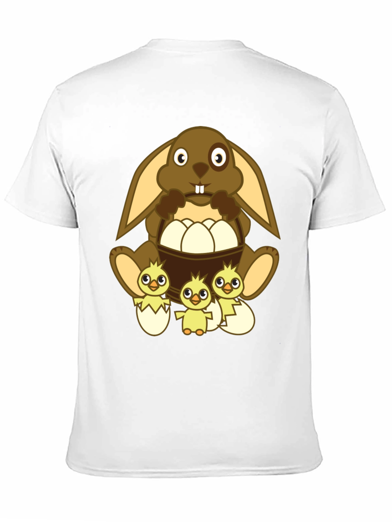 Celebra la Pascua con estilo con esta divertida camiseta negra. Presenta un adorable diseño de un conejo marrón sosteniendo una canasta llena de huevos, acompañado de tres pollitos amarillos. Perfecta para llevar en la búsqueda de huevos de Pascua, reuniones familiares o simplemente para mostrar tu espíritu festivo. Hecha con materiales cómodos, esta camiseta es ideal para lucir un look casual y alegre durante las fiestas de primavera. ¡Consigue la tuya y difunde la alegría de la Pascua!