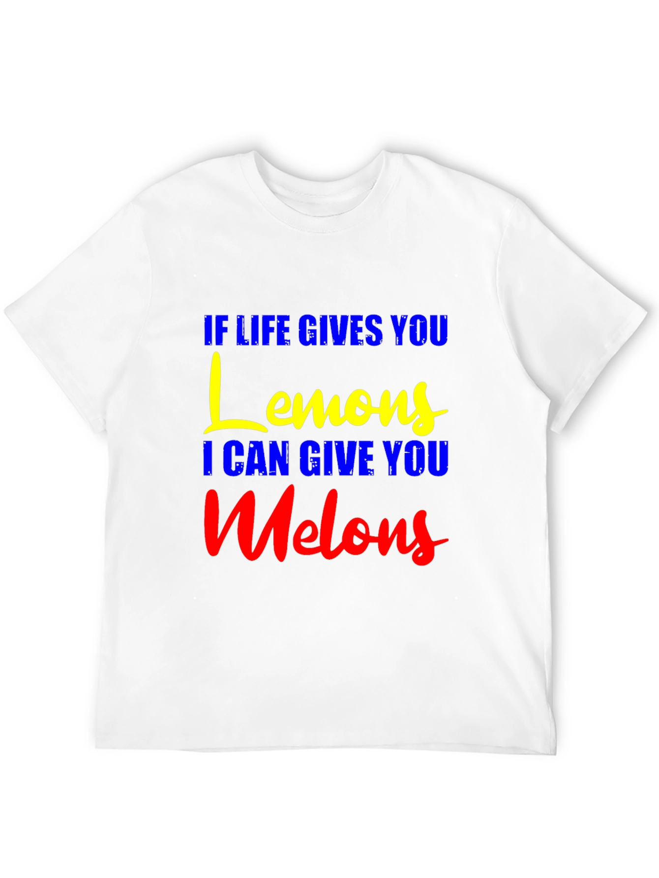 Esta camiseta negra para hombre presenta un diseño divertido y original. El texto "Si la vida te da limones, yo puedo darte melones" aparece en llamativos colores azul, amarillo y rojo, creando un contraste atractivo sobre el fondo negro. Perfecta para aquellos con sentido del humor y que buscan destacar con un estilo casual y relajado. Ideal para el uso diario, salidas con amigos o como un regalo original. ¡Luce esta camiseta con orgullo y prepárate para las sonrisas y los comentarios!