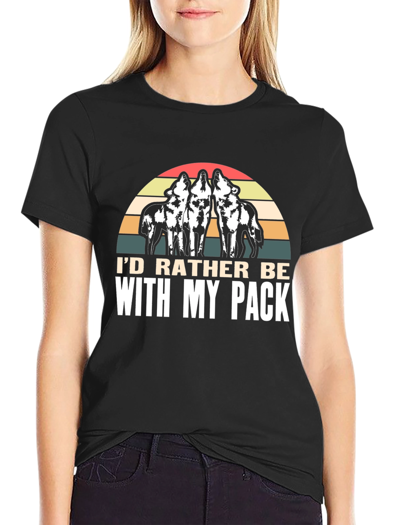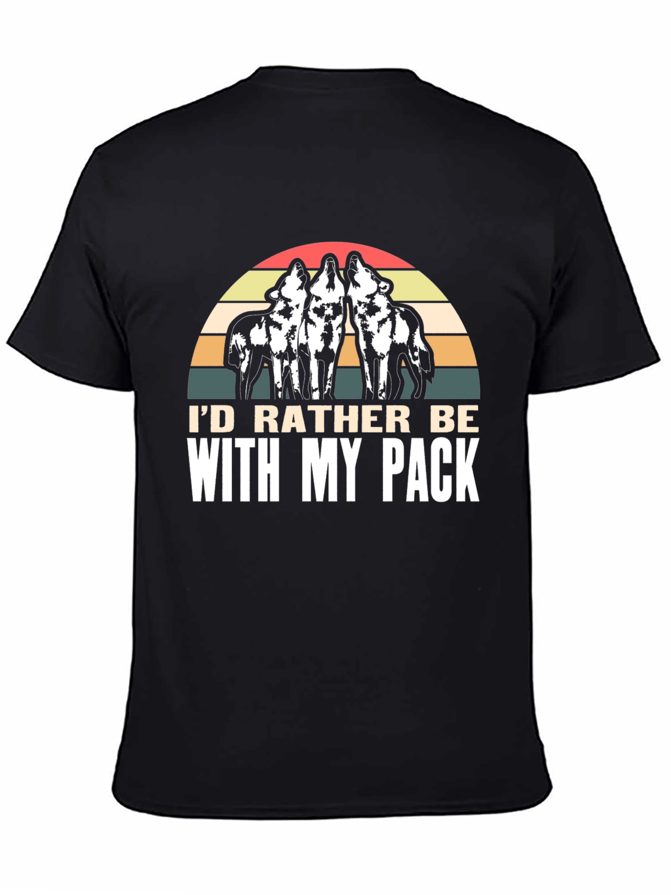 Camiseta Hombre Prefiero Estar Con Mi Manada Diseño Lobo