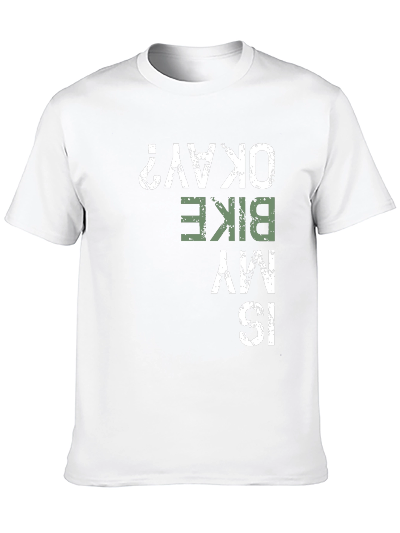 Esta camiseta negra presenta un diseño llamativo y humorístico. En la parte delantera, se muestra la frase "IS MY BIKE OKAY?" en letras blancas y verdes con un efecto texturizado que le da un toque vintage. La orientación vertical de las palabras añade un estilo único. Fabricada en un tejido suave y cómodo, esta camiseta es perfecta para usarla a diario, ya sea para salir con amigos, practicar deportes o simplemente relajarte en casa. Ideal para ciclistas con sentido del humor, esta prenda es una excelente manera de expresar tu pasión por la bicicleta con un toque divertido y desenfadado.