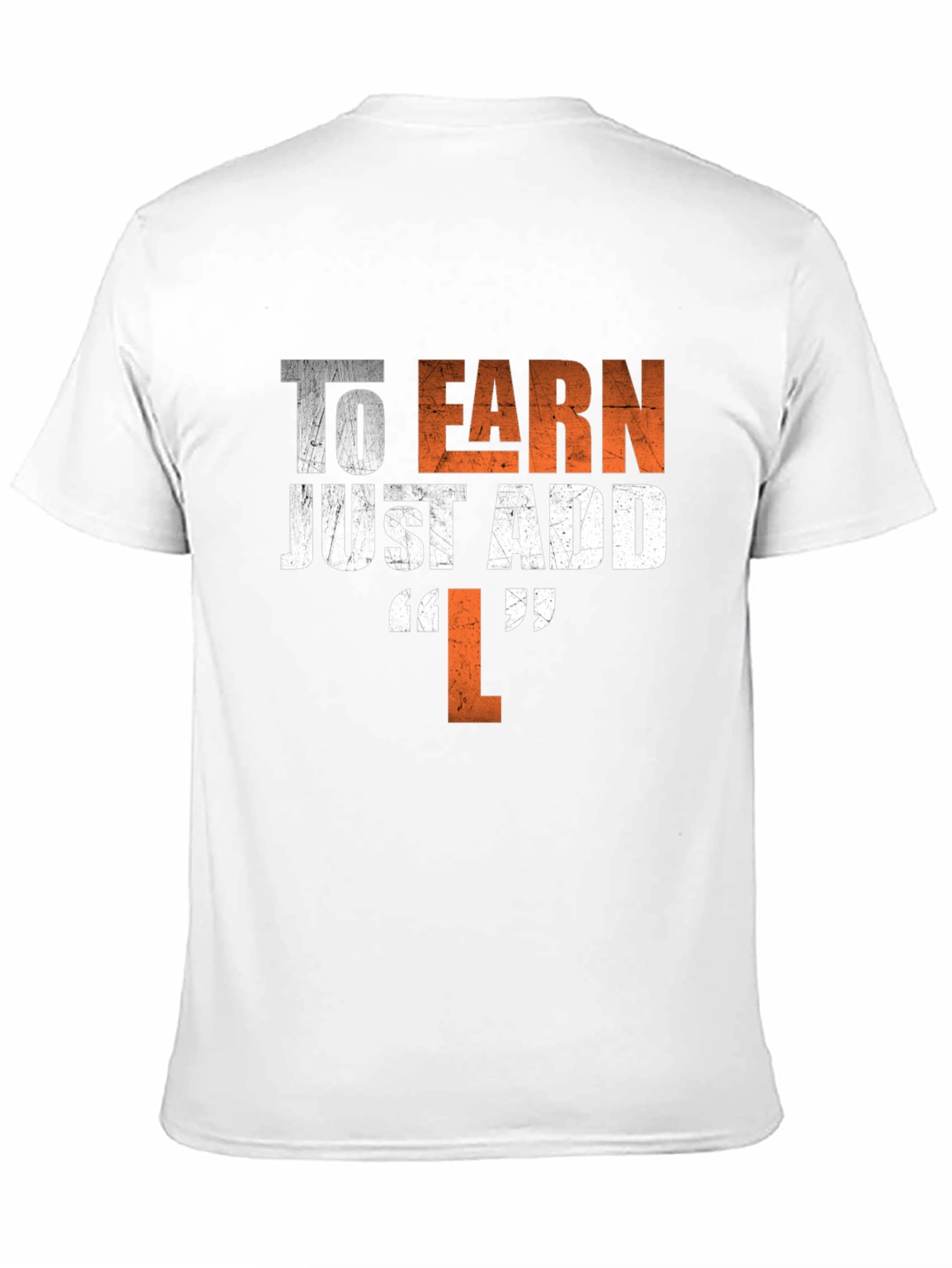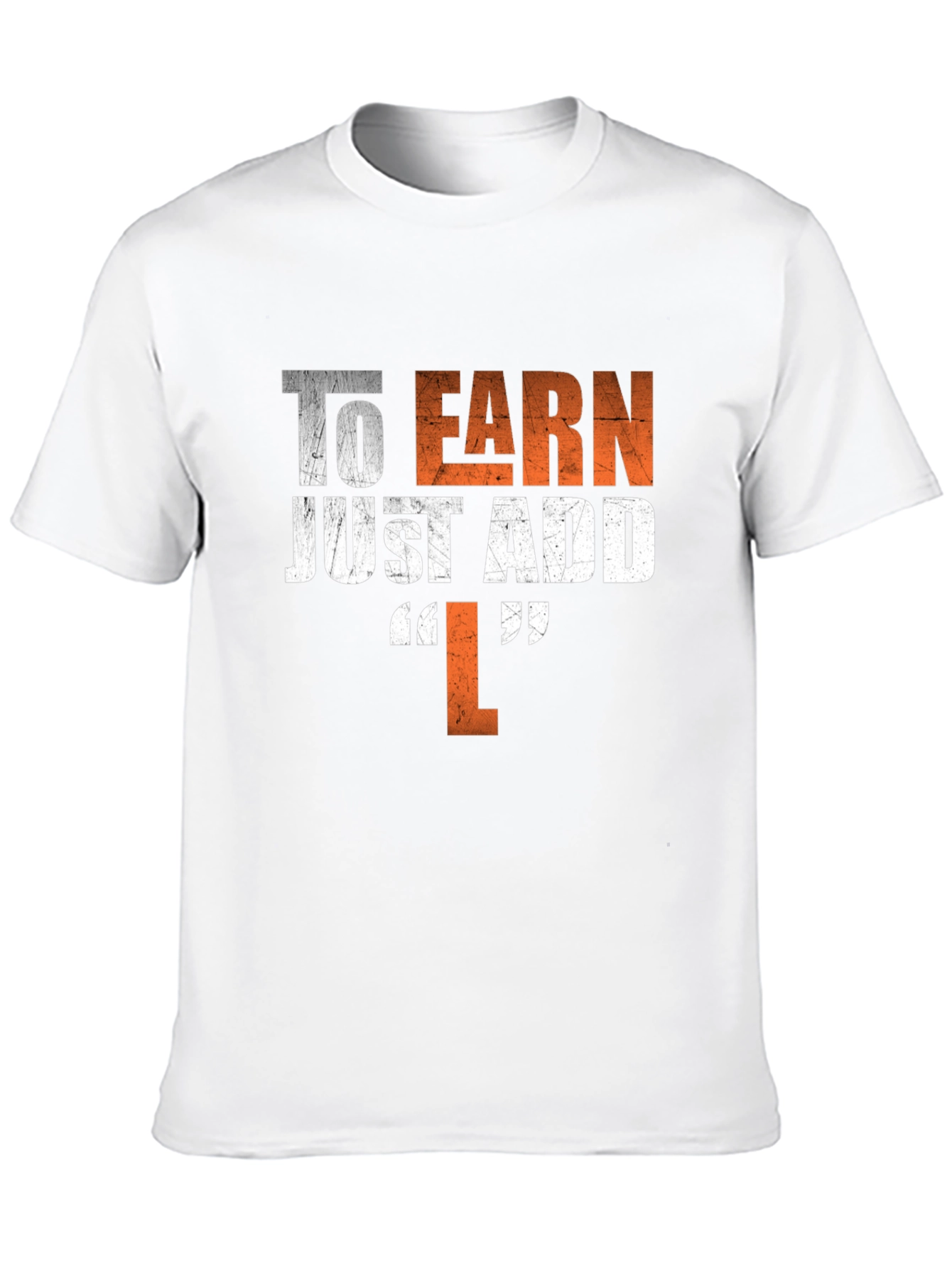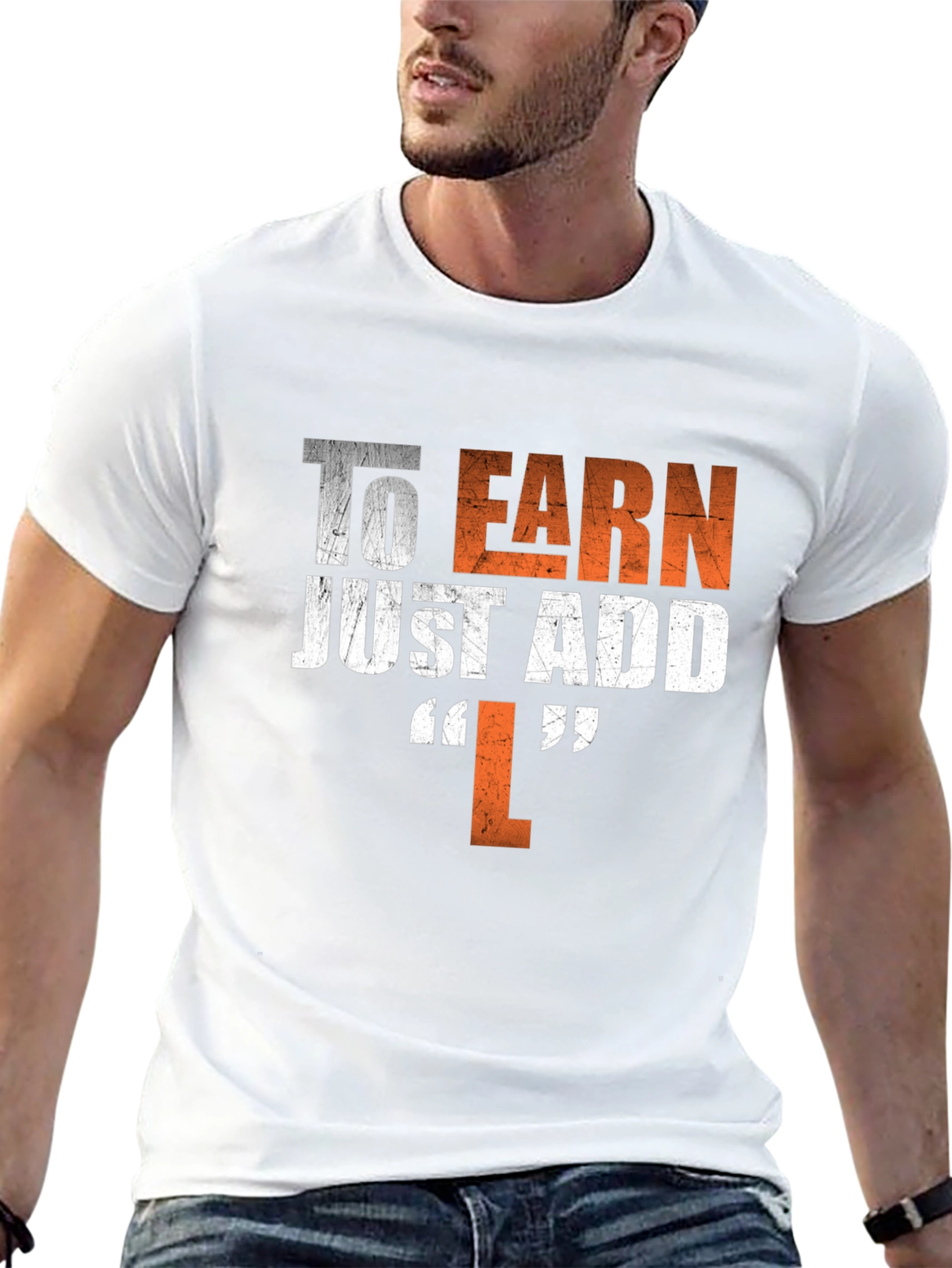 Descubre esta camiseta negra de manga corta con un diseño ingenioso y llamativo. En el pecho, destaca la frase "Para Ganar, Solo Añade 'L'", con las palabras "EARN" y la letra "L" en color naranja, creando un efecto visual impactante. El resto del texto está en blanco, ofreciendo un contraste moderno y fácil de leer. Ideal para quienes buscan una prenda original y con un toque de humor, esta camiseta es perfecta para lucir en el día a día, ya sea para salir con amigos, ir al gimnasio o simplemente relajarse en casa. Su diseño versátil la convierte en una excelente opción para combinar con jeans, pantalones cortos o incluso debajo de una chaqueta. ¡Añade un toque de estilo único a tu guardarropa con esta camiseta!