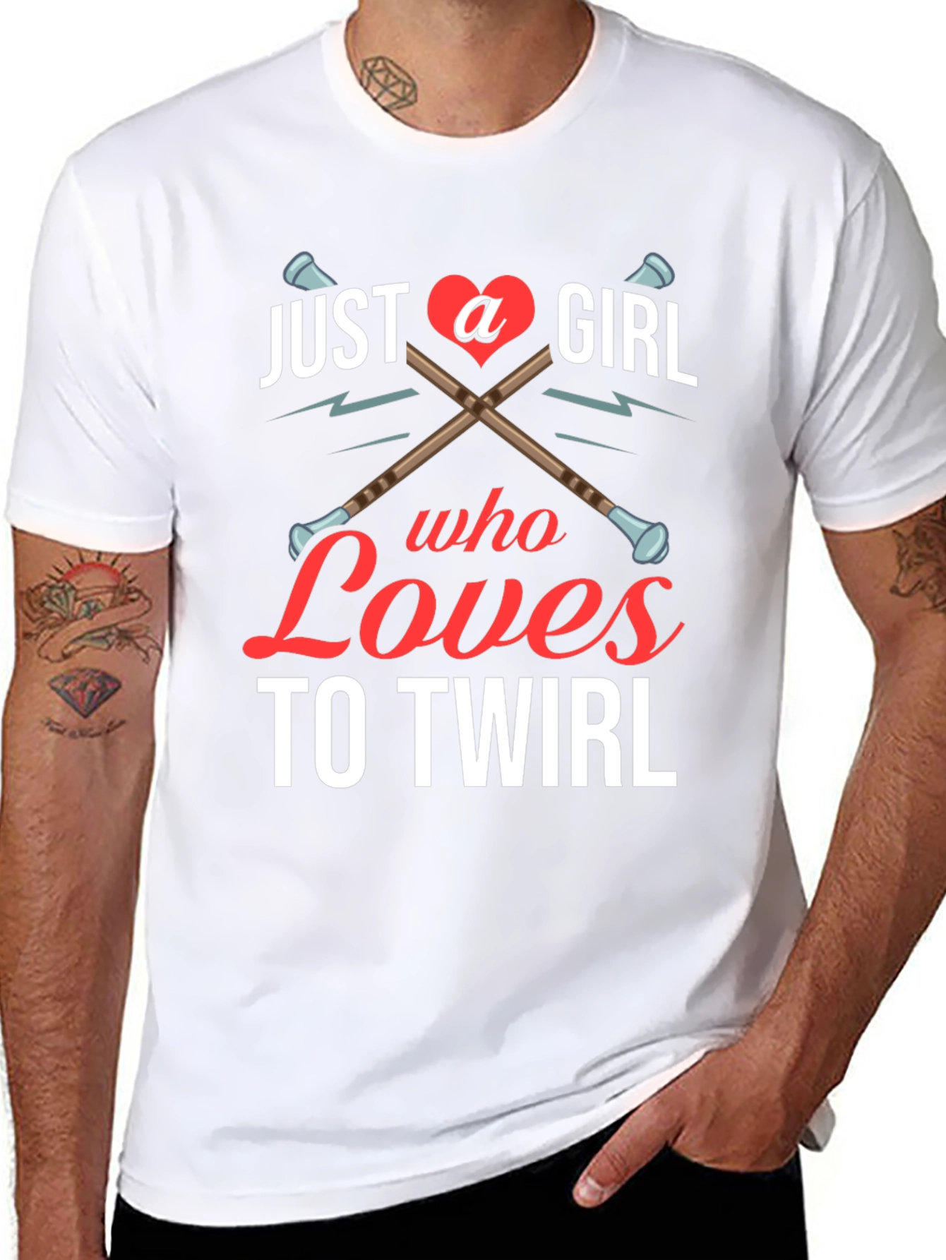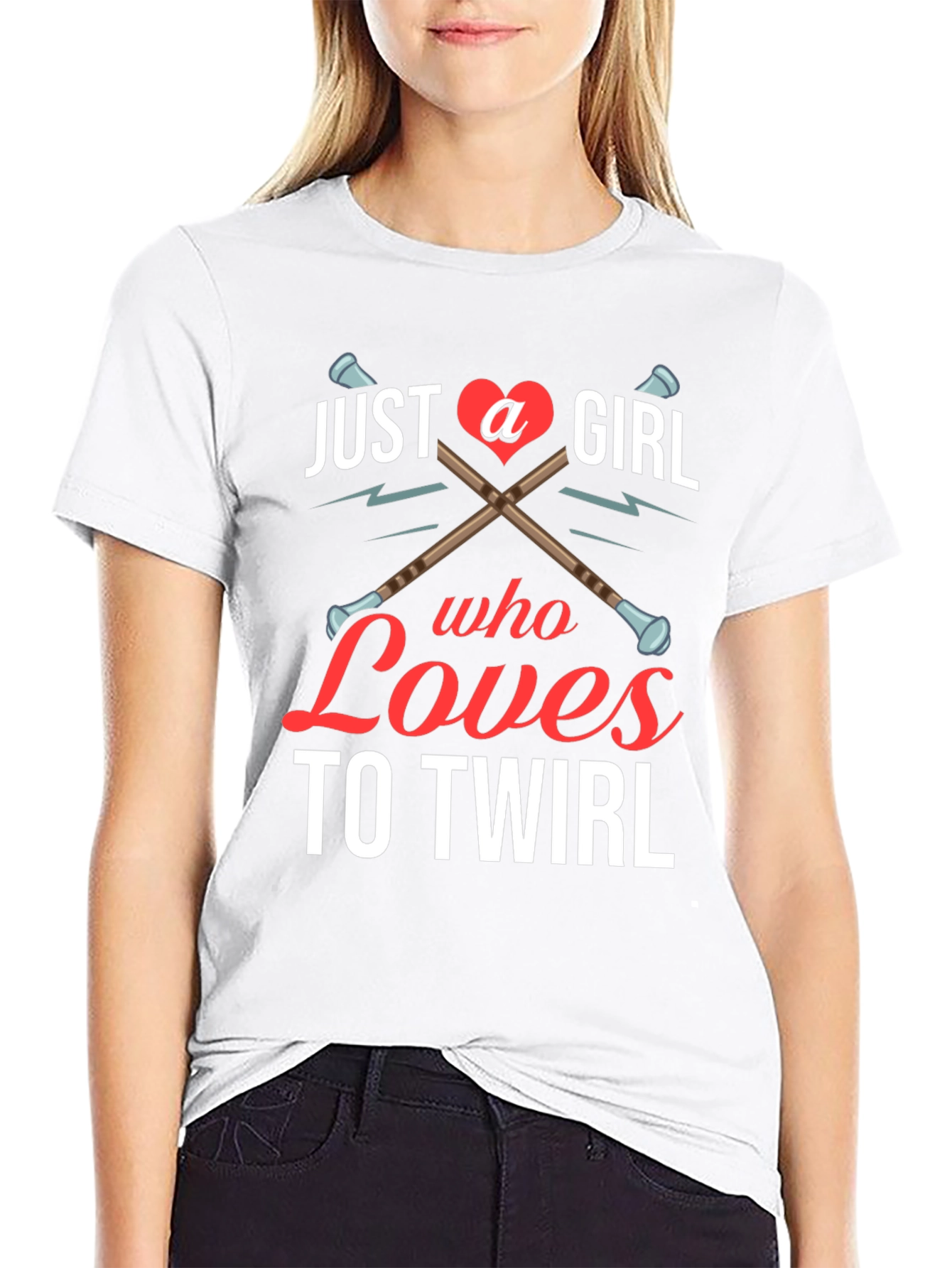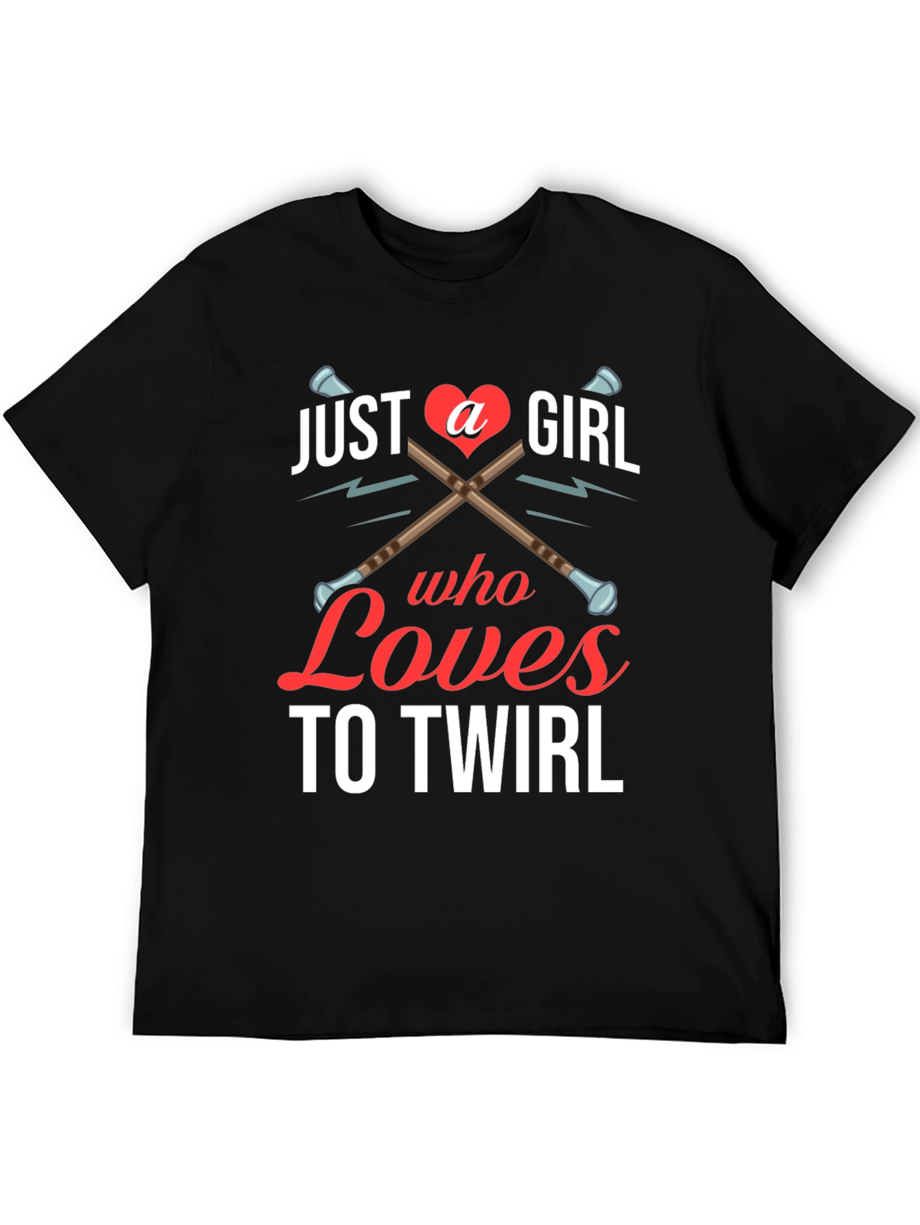 Muestra tu pasión por el baton twirling con esta elegante camiseta negra. Presenta un diseño llamativo con dos batons cruzados y la frase "Just a Girl who Loves to Twirl" en letras blancas y rojas vibrantes. El diseño incorpora un corazón rojo en la frase, añadiendo un toque de encanto. Perfecta para entrenamientos, competiciones o para el uso diario, esta camiseta es una excelente manera de expresar tu amor por este deporte. Su tela suave ofrece comodidad y durabilidad, mientras que el diseño único te hará destacar entre la multitud. ¡Consigue la tuya hoy y demuestra tu pasión!