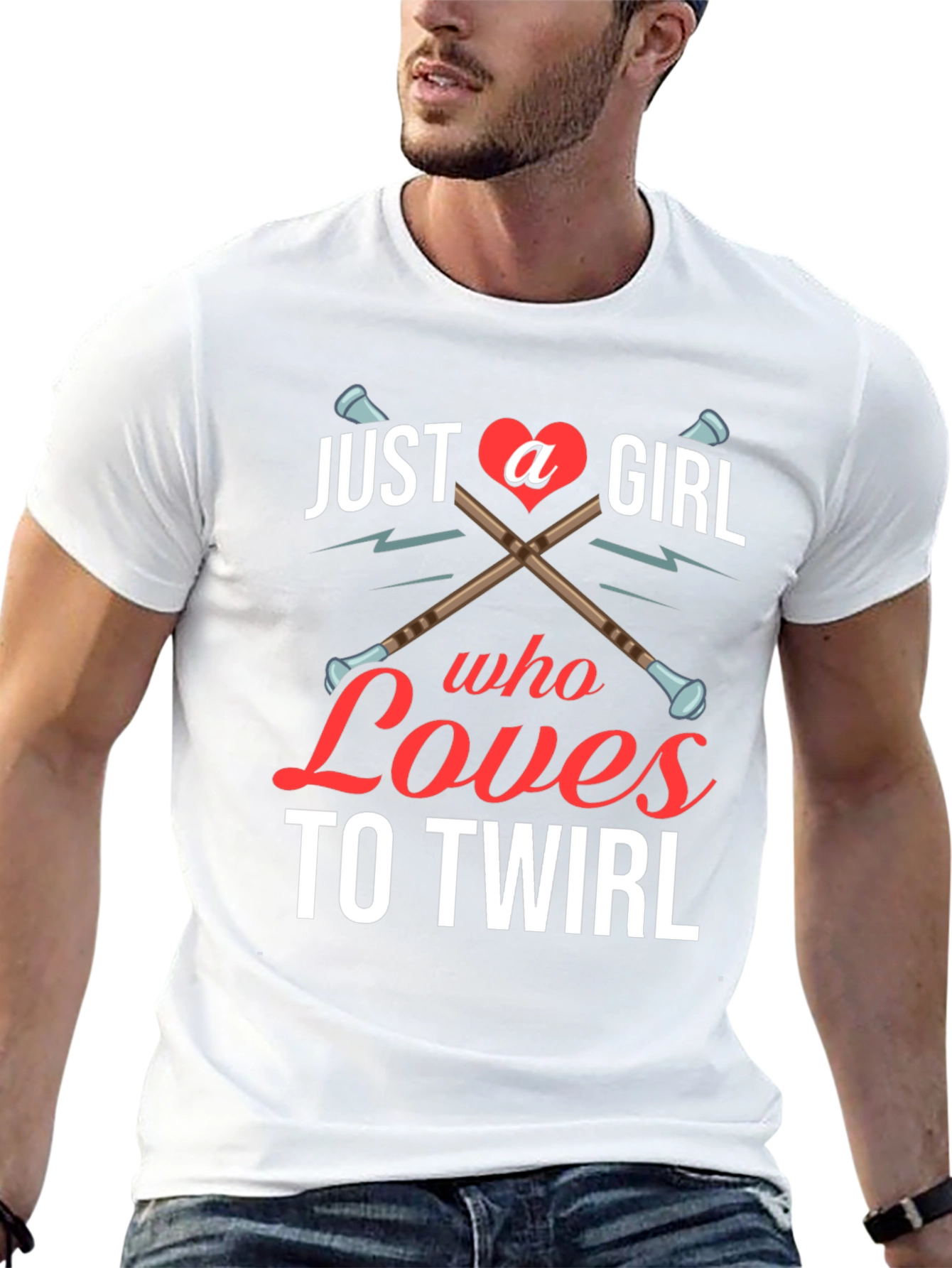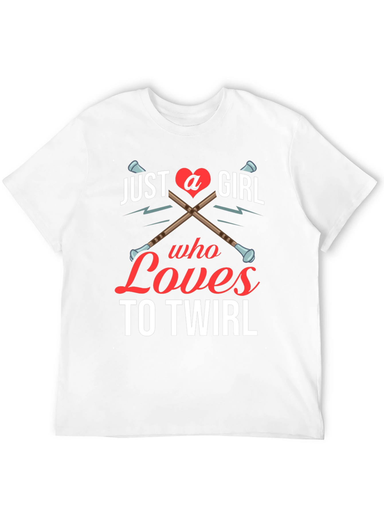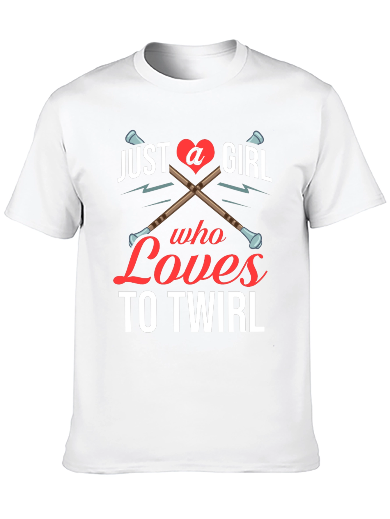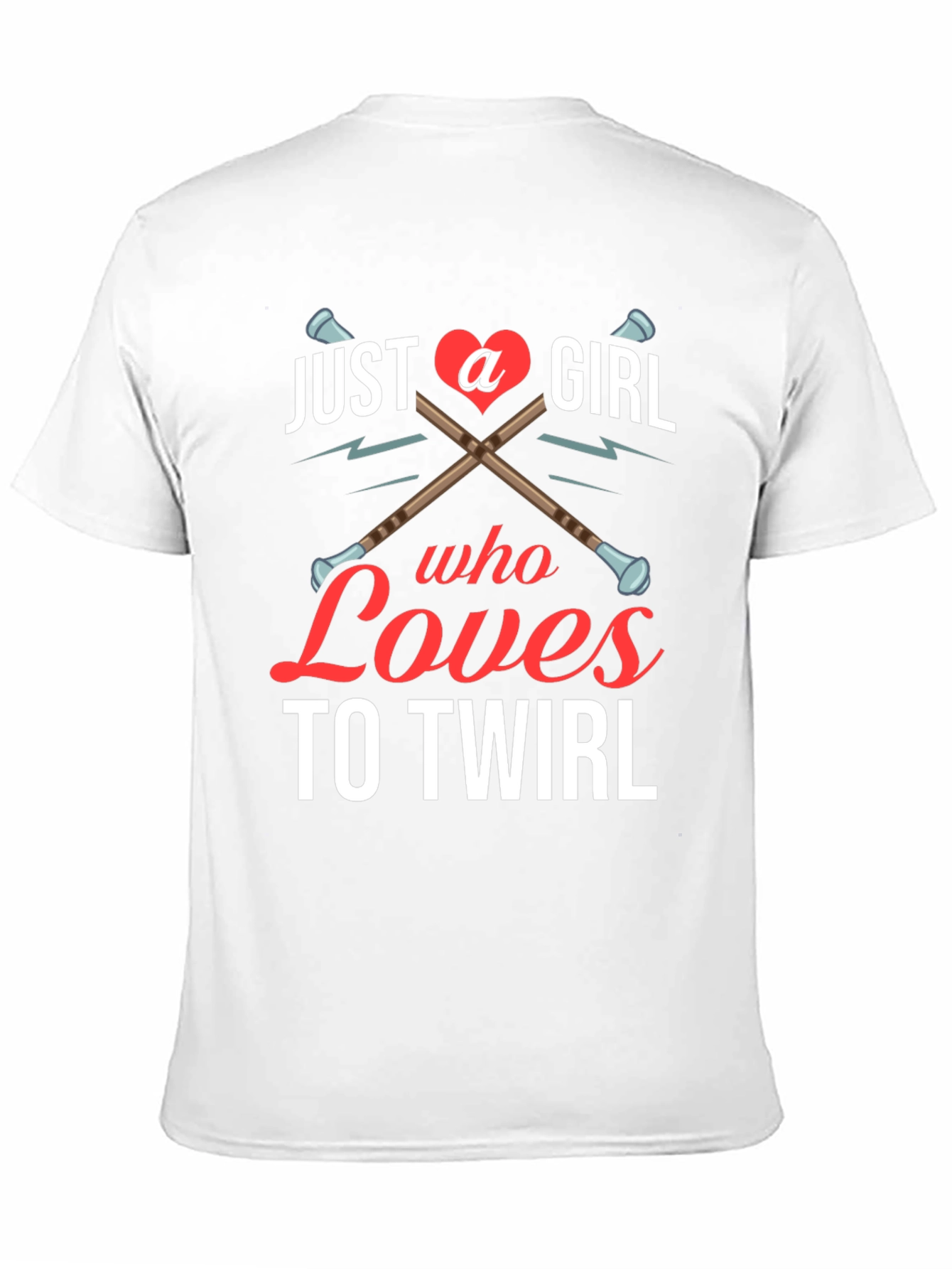 Muestra tu pasión por el baton twirling con esta elegante camiseta negra. Presenta un diseño llamativo con dos batons cruzados y la frase "Just a Girl who Loves to Twirl" en letras blancas y rojas vibrantes. El diseño incorpora un corazón rojo en la frase, añadiendo un toque de encanto. Perfecta para entrenamientos, competiciones o para el uso diario, esta camiseta es una excelente manera de expresar tu amor por este deporte. Su tela suave ofrece comodidad y durabilidad, mientras que el diseño único te hará destacar entre la multitud. ¡Consigue la tuya hoy y demuestra tu pasión!