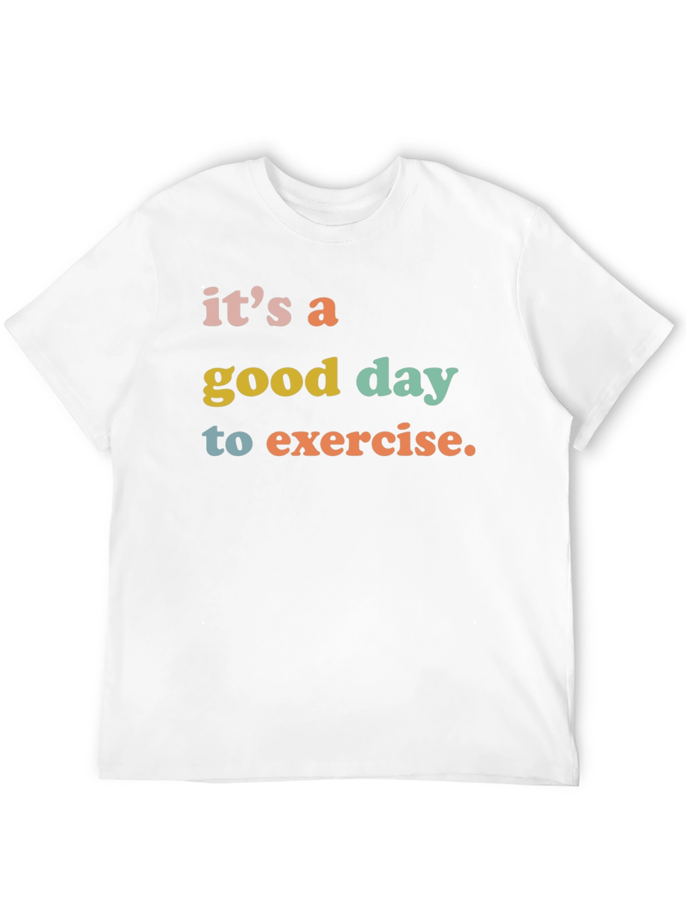 ¡Empieza tu día con la actitud correcta! Esta camiseta negra presenta un diseño llamativo y motivador con la frase "it's a good day to exercise" en vibrantes colores. Perfecta para tus entrenamientos o para lucir un estilo casual y positivo. Hecha de un material suave y cómodo, ideal para cualquier actividad. Combina esta camiseta con tus leggings favoritos o jeans para un look relajado pero con estilo. ¡Deja que esta camiseta te inspire a mantenerte activo y saludable! Ideal para regalar a esa persona especial que ama el fitness o para motivarte a ti mismo.