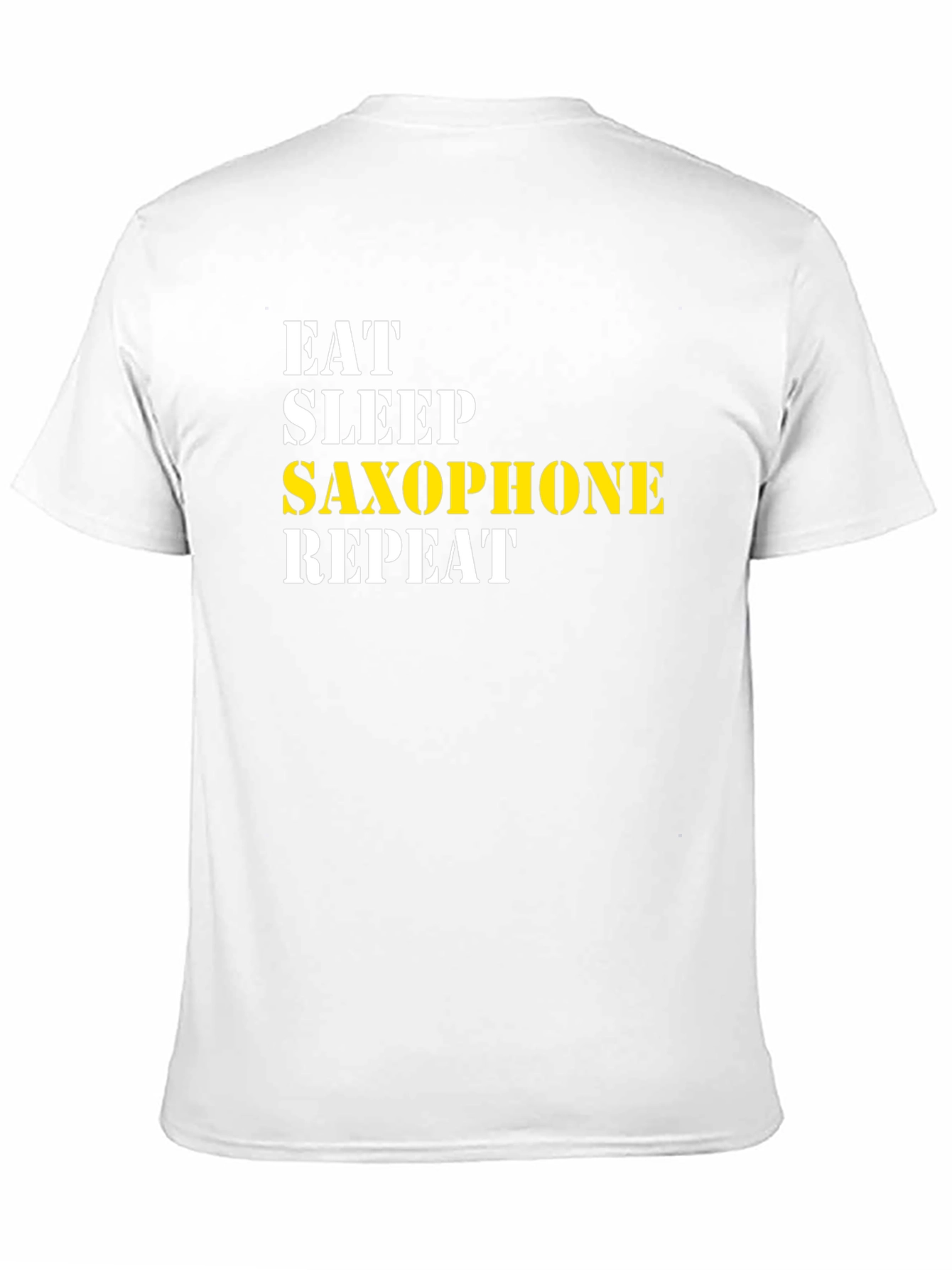 Luce tu pasión por la música con esta moderna camiseta negra. El diseño llamativo presenta la frase "EAT SLEEP SAXOPHONE REPEAT" en letras blancas y amarillas, creando un contraste vibrante. Confeccionada con un tejido suave y cómodo, esta camiseta es perfecta para el uso diario, conciertos o simplemente para mostrar tu amor por el saxofón. Su estilo casual la hace ideal para combinar con jeans, pantalones cortos o faldas. Destaca entre la multitud y expresa tu personalidad musical con esta prenda única. ¡Un regalo perfecto para músicos y amantes del saxofón!