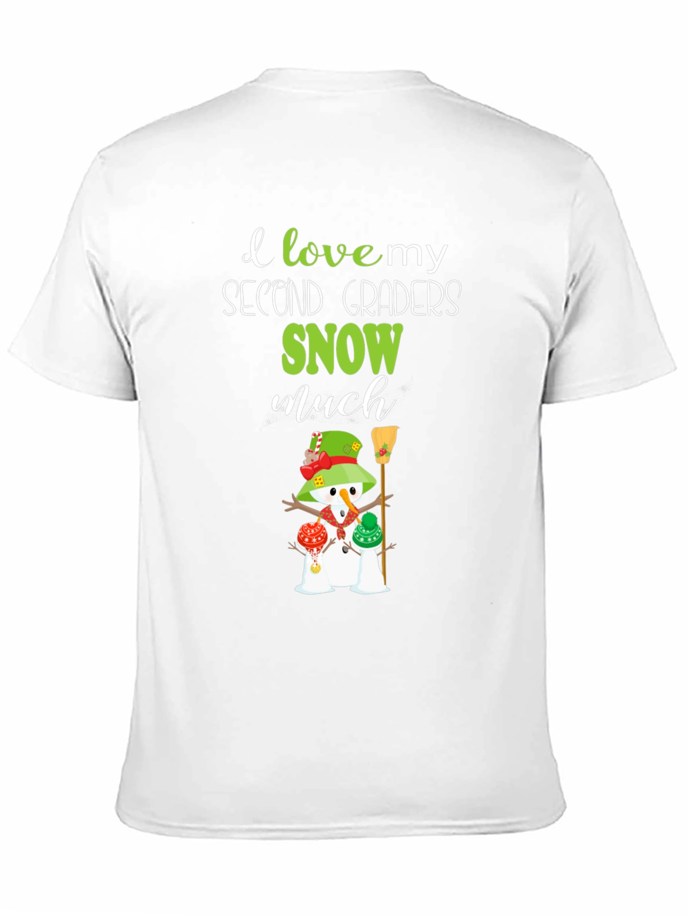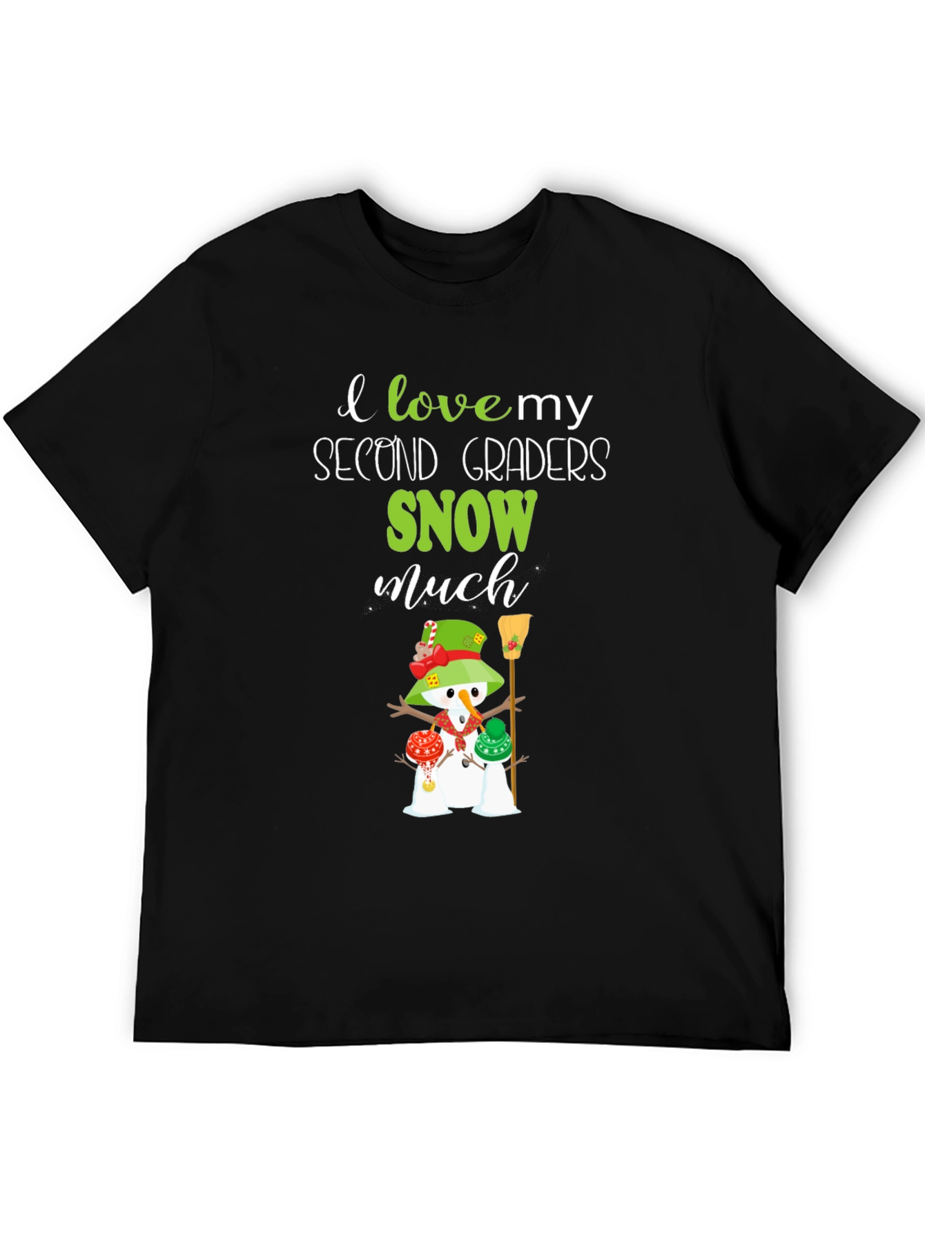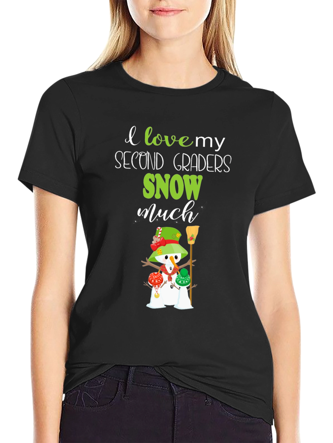 Muestra tu cariño por tus alumnos de segundo grado con esta divertida camiseta negra. Presenta un diseño llamativo con la frase "I love my SECOND GRADERS" en letras blancas y verdes, seguido de "SNOW MUCH" y una ilustración adorable de un muñeco de nieve que adorna la prenda. Confeccionada con materiales suaves y cómodos, esta camiseta es perfecta para usar en el aula, eventos escolares o simplemente para expresar tu pasión por la enseñanza. Ideal para maestros de segundo grado que quieren un toque festivo y personalizado en su vestuario diario.