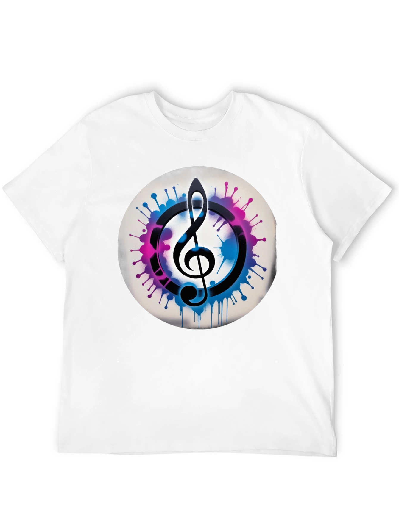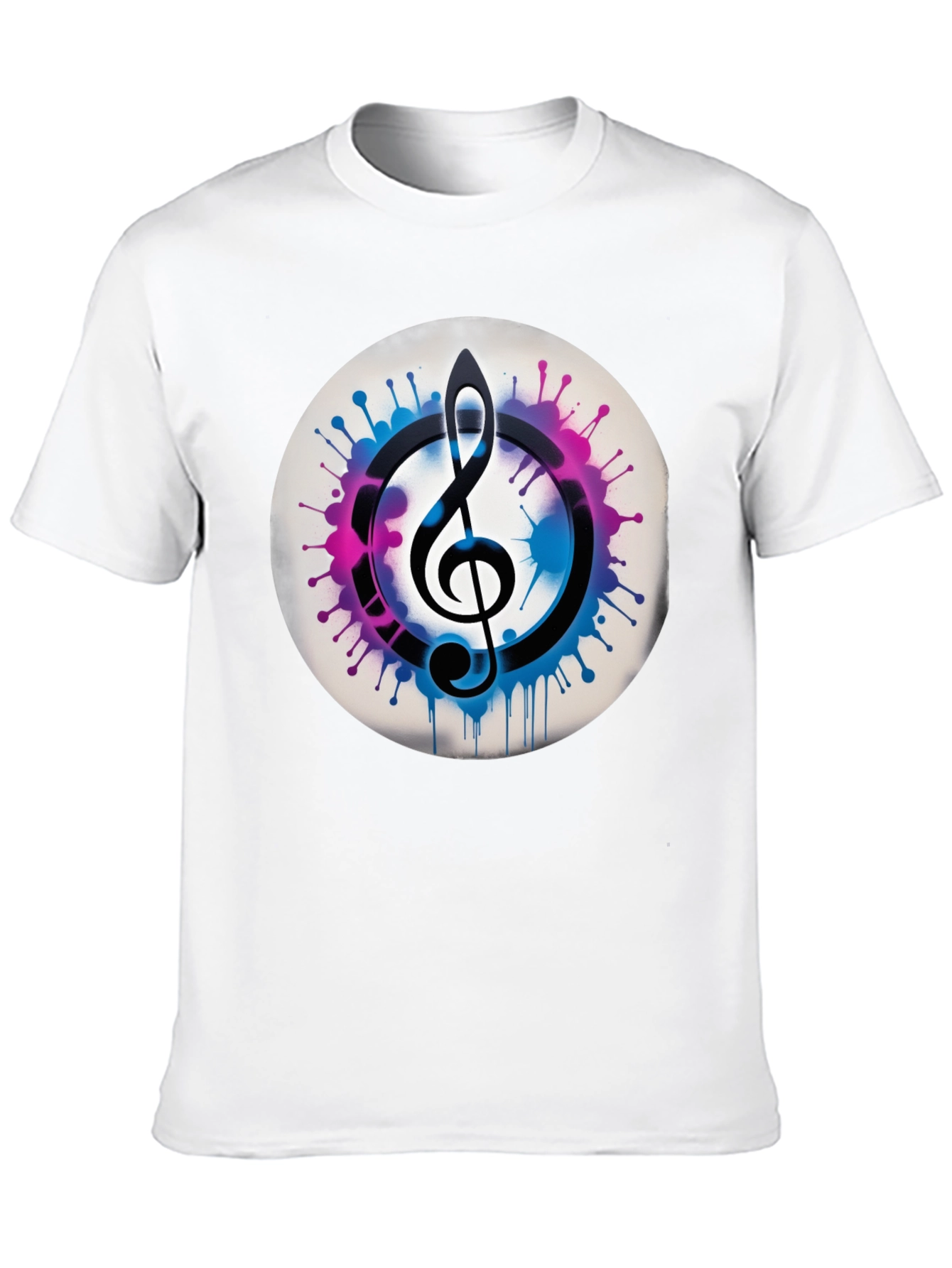 Luce tu pasión por la música con esta original camiseta negra. Presenta un llamativo diseño de una clave de sol estilizada en un círculo con vibrantes salpicaduras abstractas en tonos azules y fucsias, creando un efecto visual moderno y artístico. Ideal para músicos, amantes de la música o aquellos que buscan una prenda única y con estilo. Su tejido suave y cómodo la convierte en la elección perfecta para uso diario, conciertos o cualquier ocasión casual. Destaca entre la multitud con esta pieza que combina moda y expresión musical.