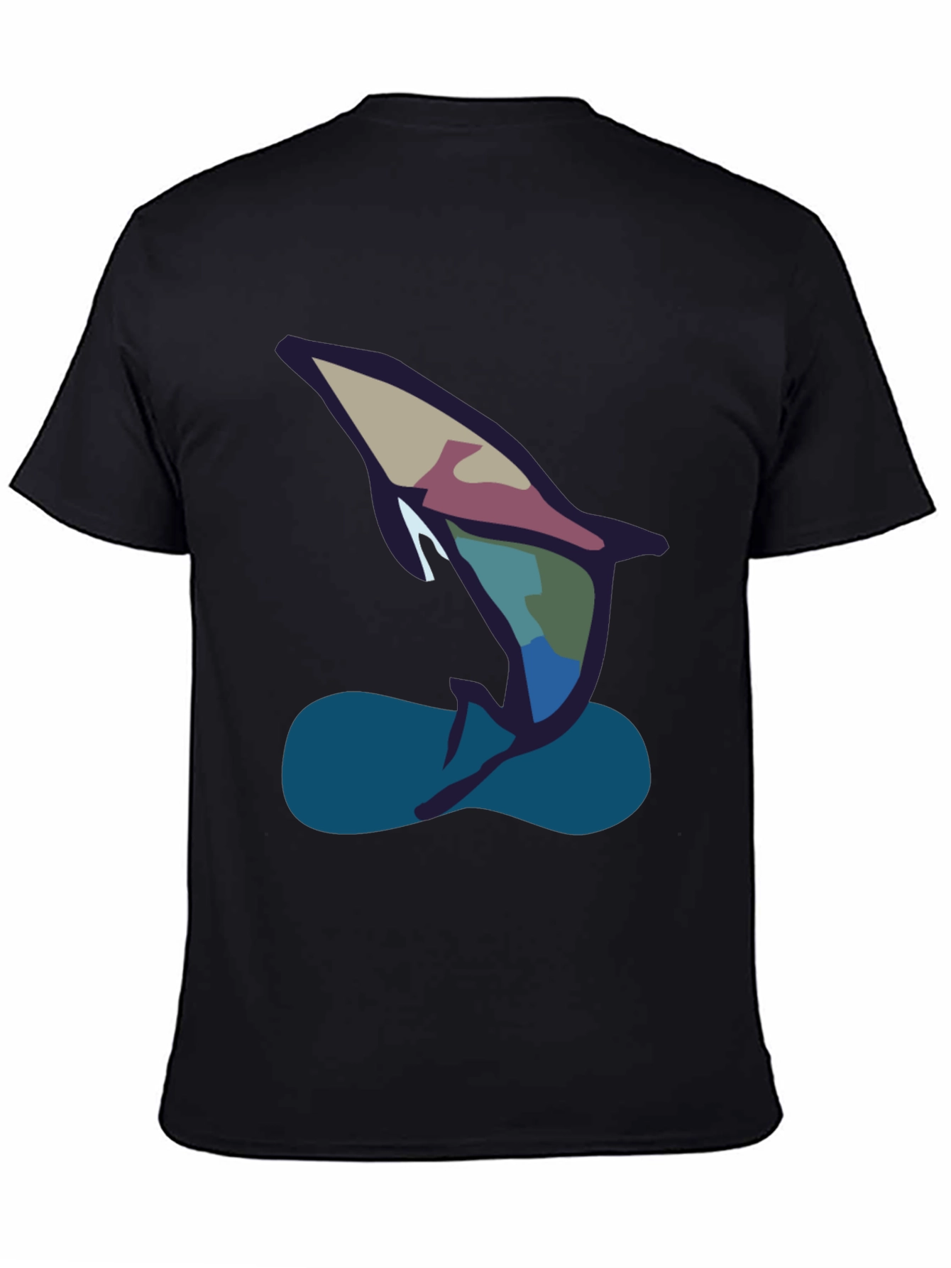 Luce esta moderna camiseta negra con un llamativo diseño abstracto de un delfín en el centro. La camiseta de corte clásico, ideal para cualquier ocasión casual. El diseño del delfín presenta una paleta de colores que incluyen tonos azules, verdes y tierra, creando un efecto visual único y moderno. Esta camiseta es perfecta para aquellos que buscan expresar su estilo personal y pasión por la vida marina. Combínala con jeans o pantalones cortos para un look relajado y con estilo. Añade un toque artístico a tu guardarropa con esta prenda distintiva.