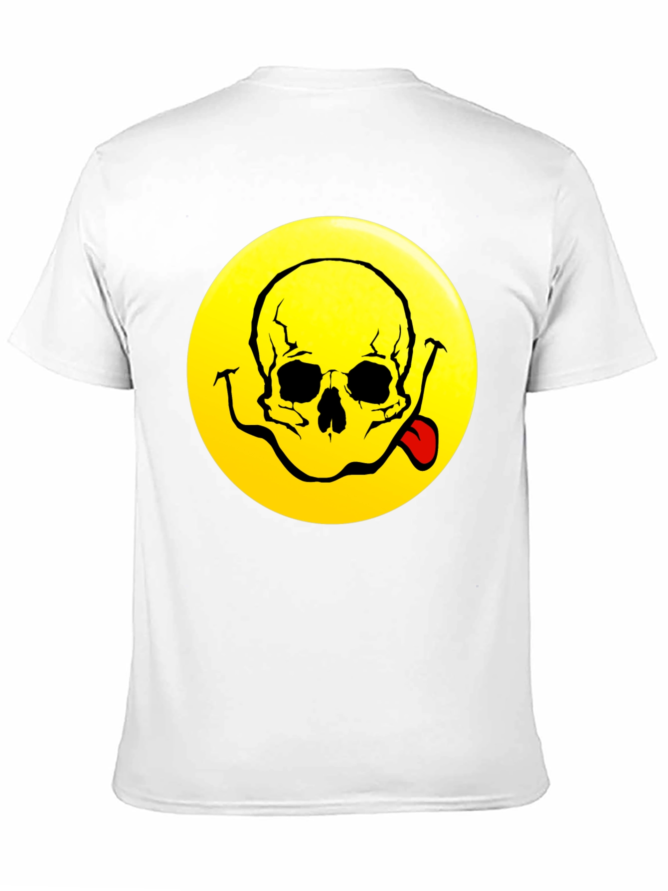 Luce esta llamativa camiseta negra con un diseño único de calavera dentro de un círculo amarillo, ¡una versión divertida y original de la muerte! Ideal para destacar con un toque de humor y rebeldía. Fabricada con materiales suaves y cómodos, es perfecta para el uso diario, conciertos o cualquier ocasión donde quieras expresar tu personalidad. Su diseño audaz la convierte en un excelente tema de conversación. ¡Atrévete a llevar esta pieza que combina lo macabro con lo alegre!