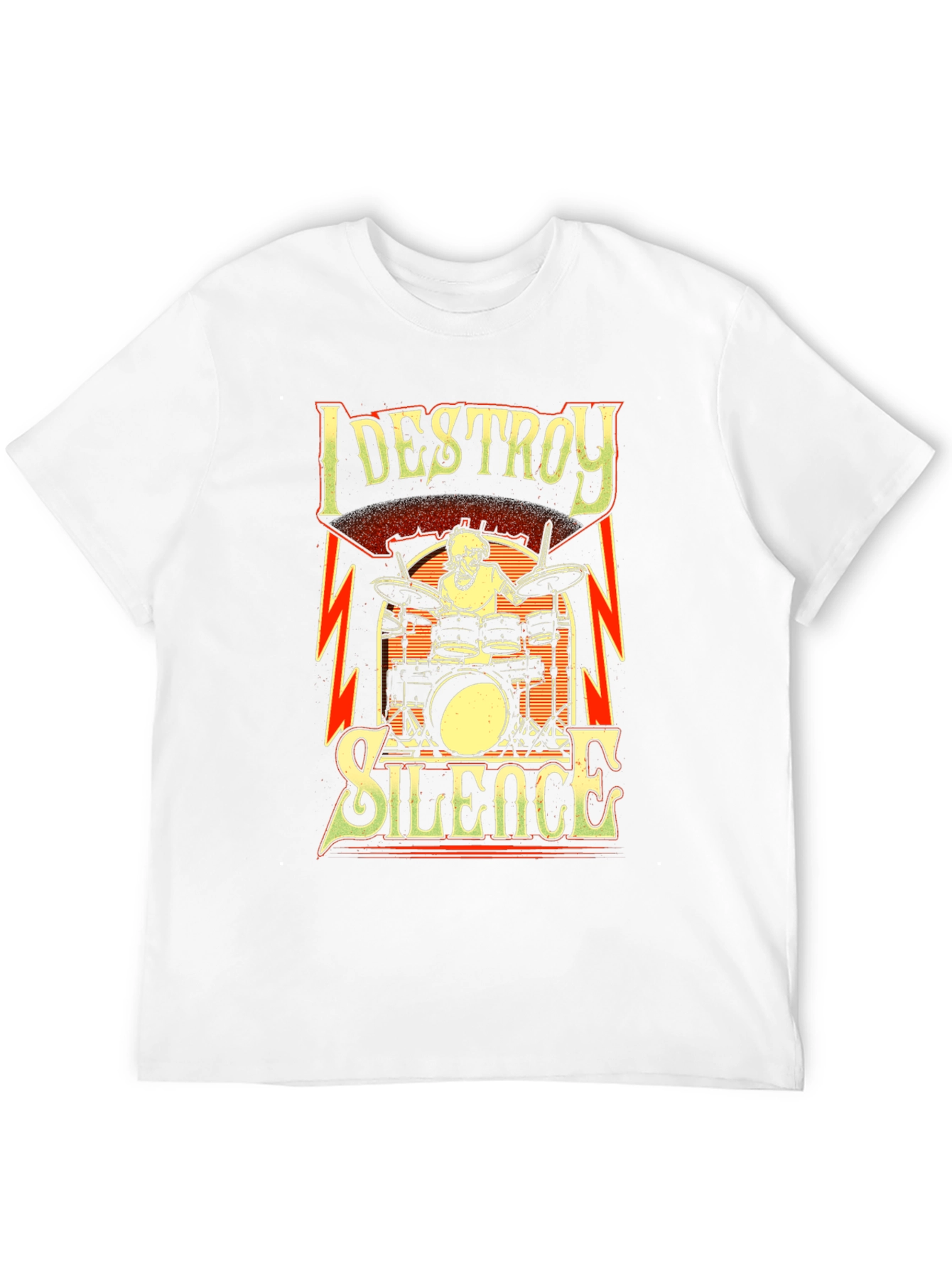 Destaca con esta camiseta negra de manga corta con un diseño llamativo y audaz. En el centro, presenta una ilustración de un baterista esquelético tocando con pasión, acompañado del texto "I DESTROY SILENCE" en una tipografía impactante y con efectos de rayo. Fabricada con un material suave y cómodo, esta camiseta es perfecta para expresar tu amor por la música y tu actitud rebelde. Ideal para conciertos, eventos informales o simplemente para destacar en el día a día. Un regalo perfecto para los amantes de la música rock y el metal. ¡Muestra tu estilo único y haz una declaración con esta camiseta original!
