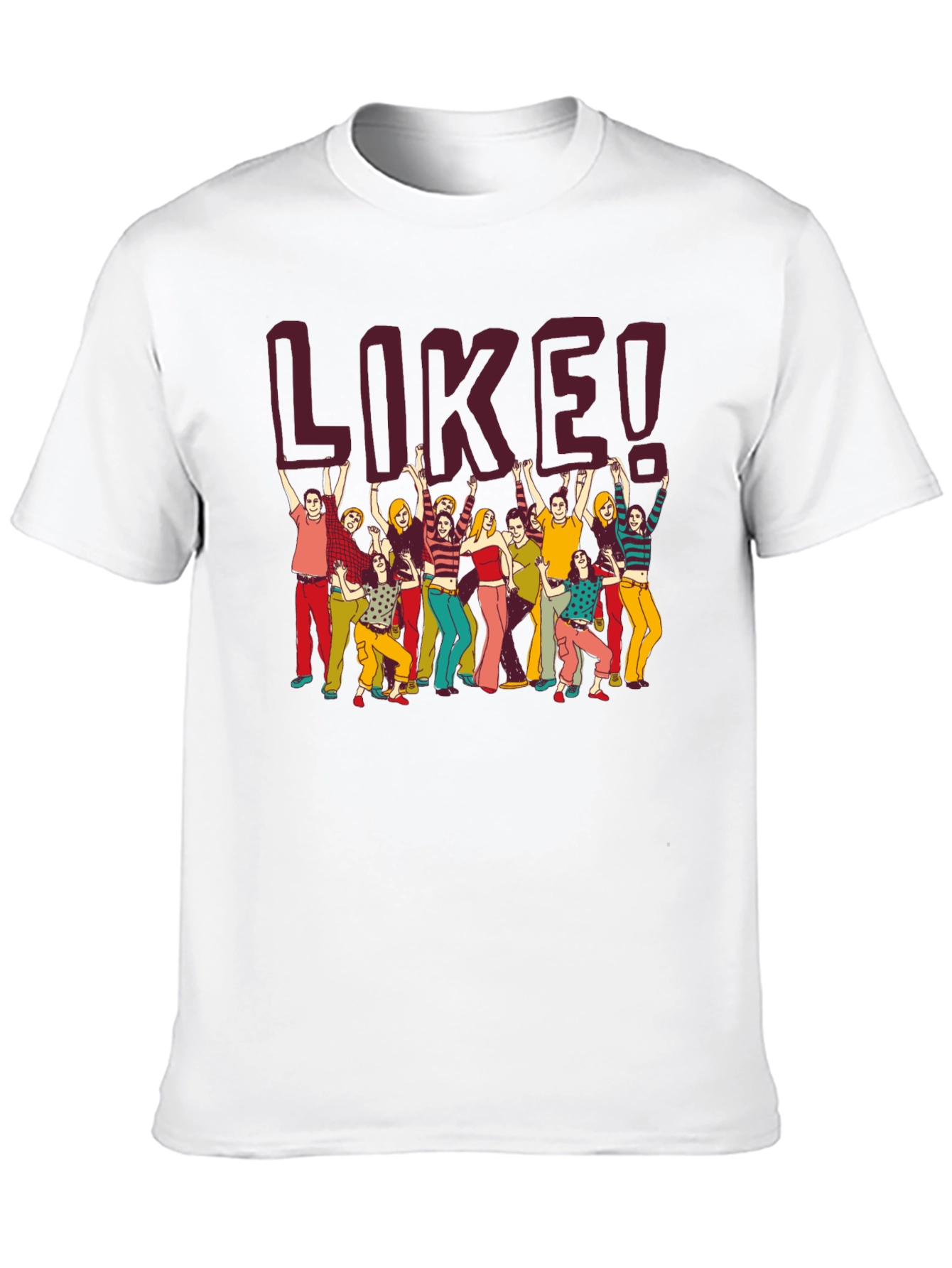 Luce esta moderna camiseta negra con un llamativo diseño. Presenta un grupo de personas celebrando y sosteniendo letras que forman la palabra "LIKE!". Perfecta para expresar tu entusiasmo y buen gusto, esta camiseta es ideal para ocasiones informales, salidas con amigos o simplemente para añadir un toque divertido a tu estilo diario. Su diseño vibrante y contemporáneo la convierte en una pieza única en tu guardarropa. Confeccionada para ofrecer comodidad y estilo, esta camiseta será tu nueva favorita. ¡Muestra tu espíritu positivo con esta prenda original y atractiva!