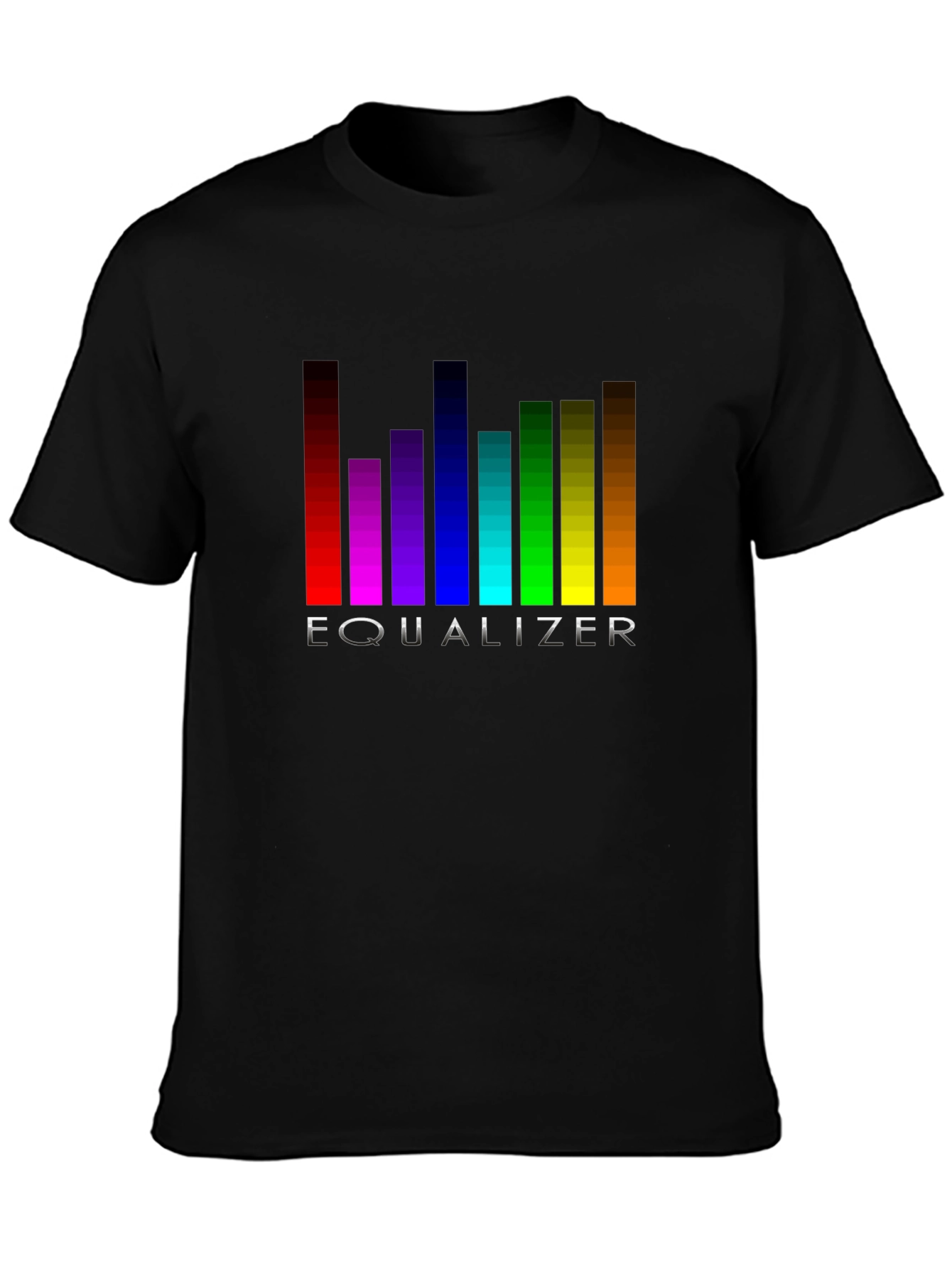 Luce un estilo moderno y audaz con esta camiseta negra de corte clásico. Presenta un llamativo diseño gráfico de un ecualizador con barras de colores vibrantes, creando un efecto visual dinámico y llamativo. Con la palabra “EQUALIZER” debajo del gráfico. Perfecta para los amantes de la música y el diseño. Ideal para usar en conciertos, eventos o simplemente para destacar en tu día a día. Fabricada con materiales suaves y transpirables para máxima comodidad y durabilidad. Añade un toque de personalidad y estilo a tu guardarropa con esta prenda única.