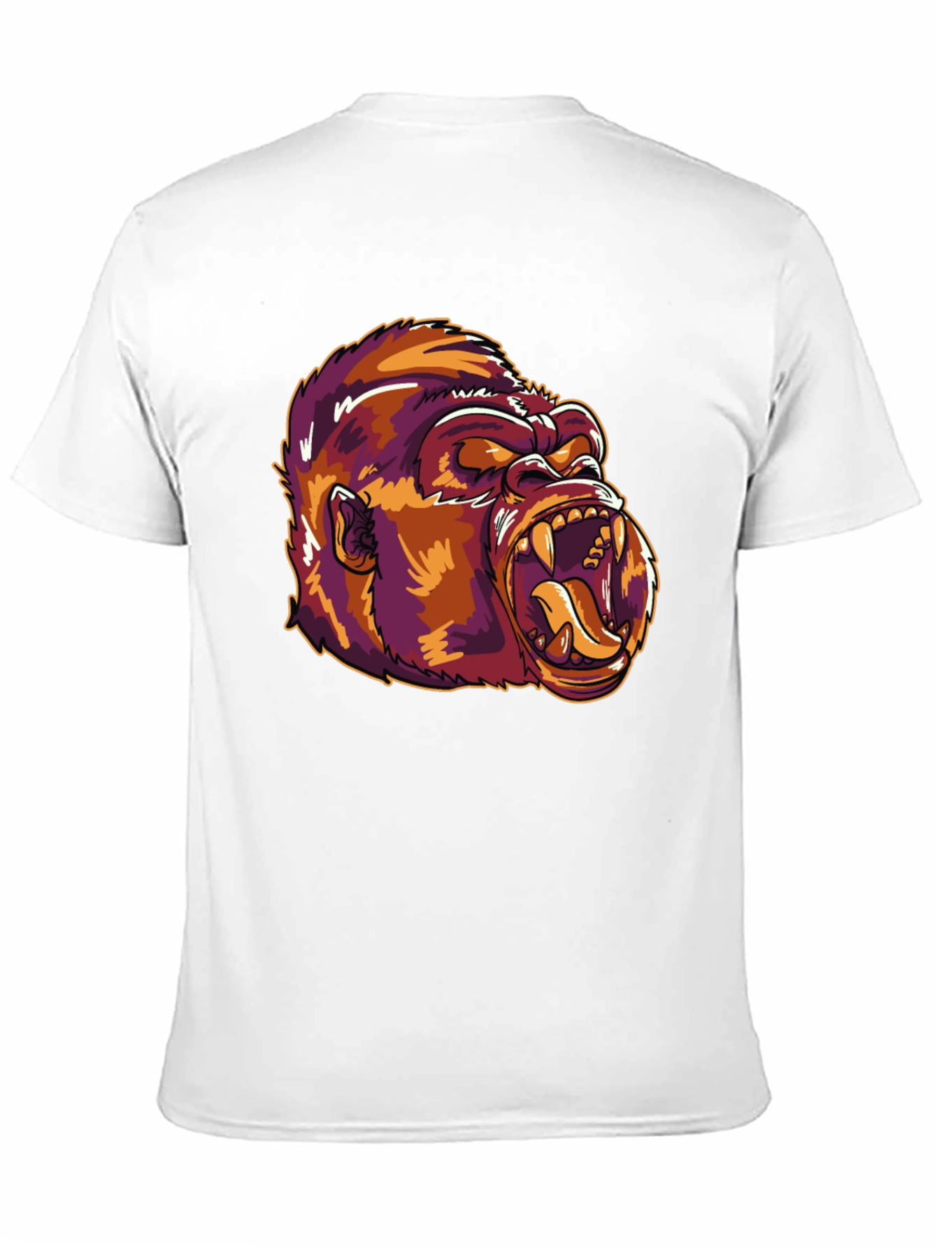 Muestra tu lado salvaje con esta llamativa camiseta negra. Confeccionada en un tejido suave y cómodo, esta camiseta presenta un diseño audaz de la cabeza de un gorila en colores vibrantes como el naranja, morado y amarillo. El gorila, con expresión feroz y colmillos a la vista, le da un toque único y atrevido a tu look. Perfecta para usar en salidas casuales, conciertos o simplemente para expresar tu personalidad. ¡Esta camiseta no pasará desapercibida! Dale un toque original a tu armario con esta prenda de diseño.