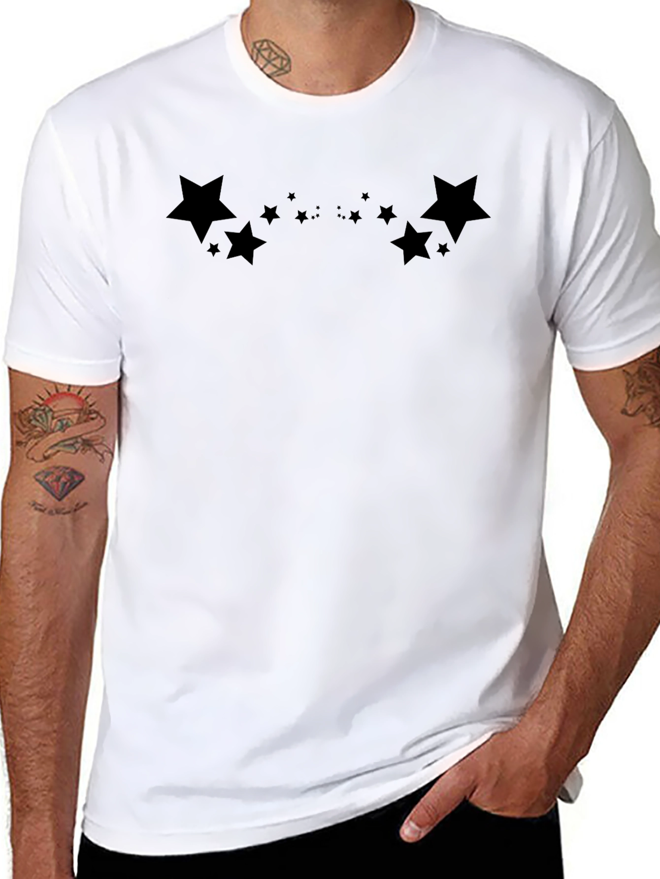 Descubre nuestra camiseta negra de manga corta, perfecta para un estilo casual y moderno. Con un diseño único de estrellas estampadas en el pecho, esta camiseta añade un toque distintivo a tu vestuario diario. Fabricada con un tejido suave y cómodo, es ideal para usar en cualquier ocasión, desde salidas informales hasta momentos de relax en casa. Su corte clásico asegura un ajuste favorecedor para todo tipo de cuerpo. Combina esta camiseta con tus jeans o pantalones favoritos para un look fresco y actual. ¡Atrévete a destacar con este diseño original!