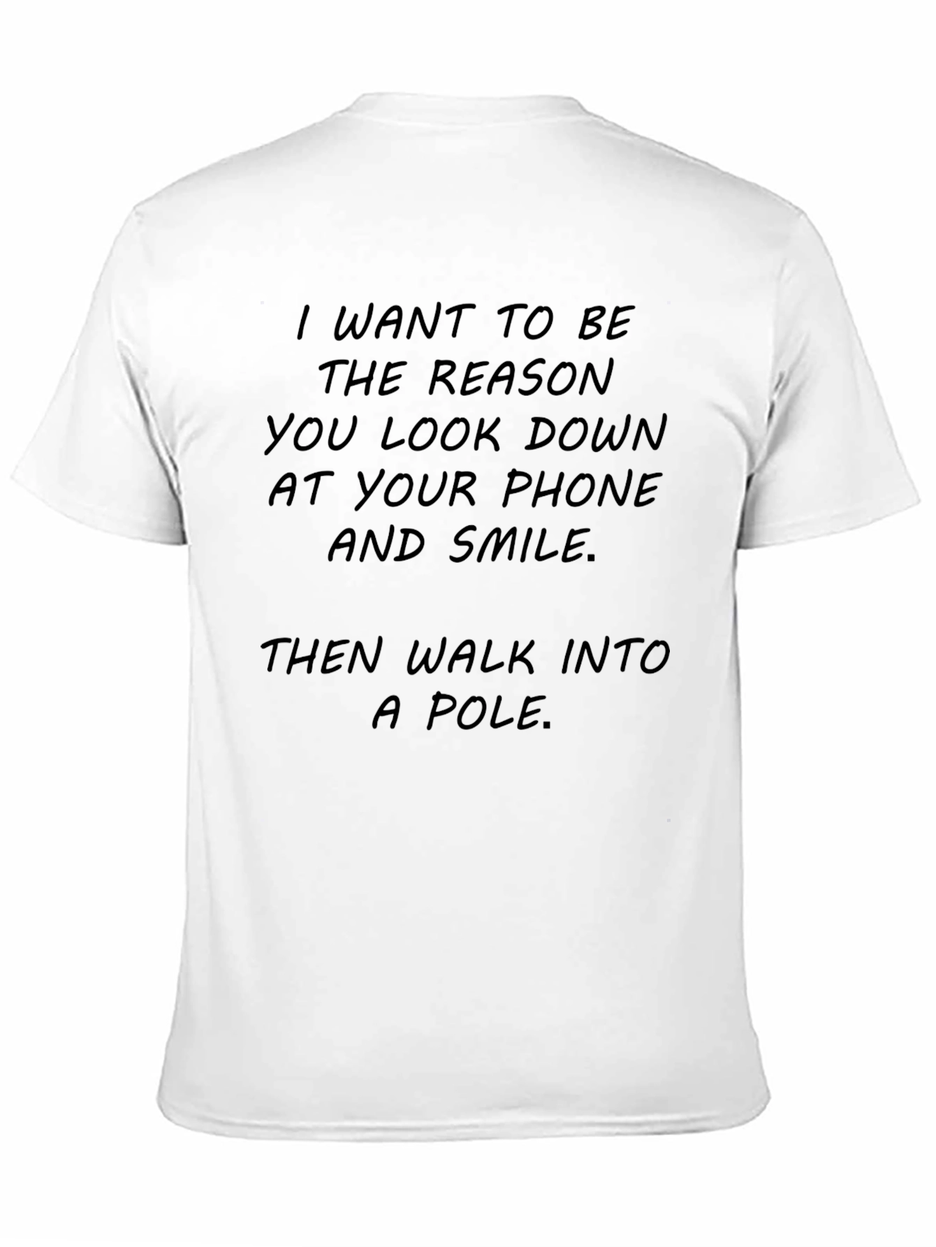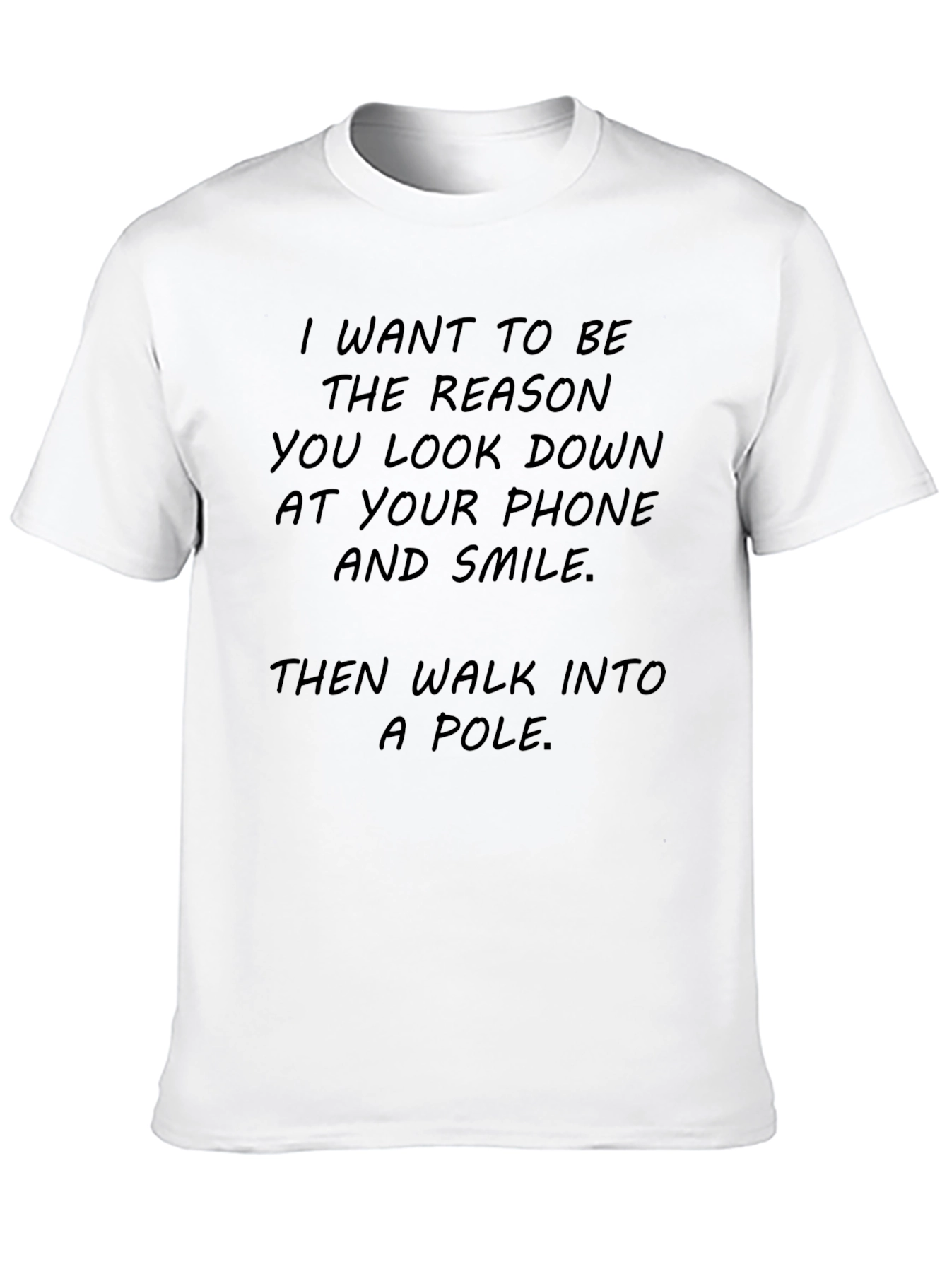 Luce esta llamativa camiseta negra de corte clásico que seguro captará miradas. Fabricada en un material suave al tacto, esta prenda promete comodidad durante todo el día. Su diseño presenta una frase ingeniosa estampada en el frente: 'Quiero ser la razón por la que miras tu teléfono y sonríes. Luego te tropiezas con un poste.' Ideal para quienes disfrutan del humor sarcástico y quieren añadir un toque de originalidad a su vestuario. Perfecta para salidas casuales, reuniones con amigos o simplemente para relajarte en casa con estilo. Esta camiseta es una declaración de intenciones y una invitación a la sonrisa. Un regalo ideal para el amigo con sentido del humor.