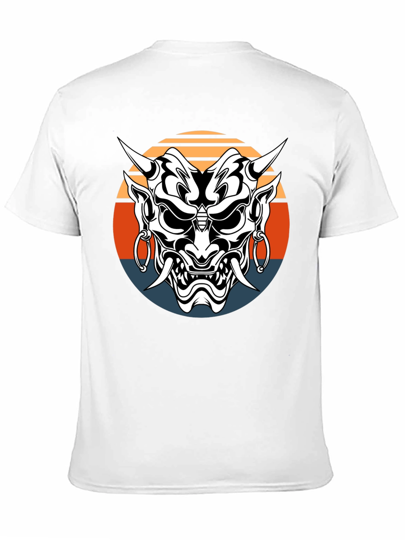 Luce esta impresionante camiseta negra con un diseño audaz de una máscara Oni japonesa estilizada. La camiseta presenta una llamativa ilustración en el centro del pecho, donde la máscara resalta sobre un fondo de sol abstracto con tonos naranja y azul. Perfecta para los amantes de la cultura japonesa y el arte moderno, esta prenda ofrece un estilo único y llamativo. Ideal para uso casual, salidas con amigos o para expresar tu individualidad con un toque de misterio y sofisticación. Fabricada con materiales suaves y cómodos, esta camiseta garantiza durabilidad y confort durante todo el día.
