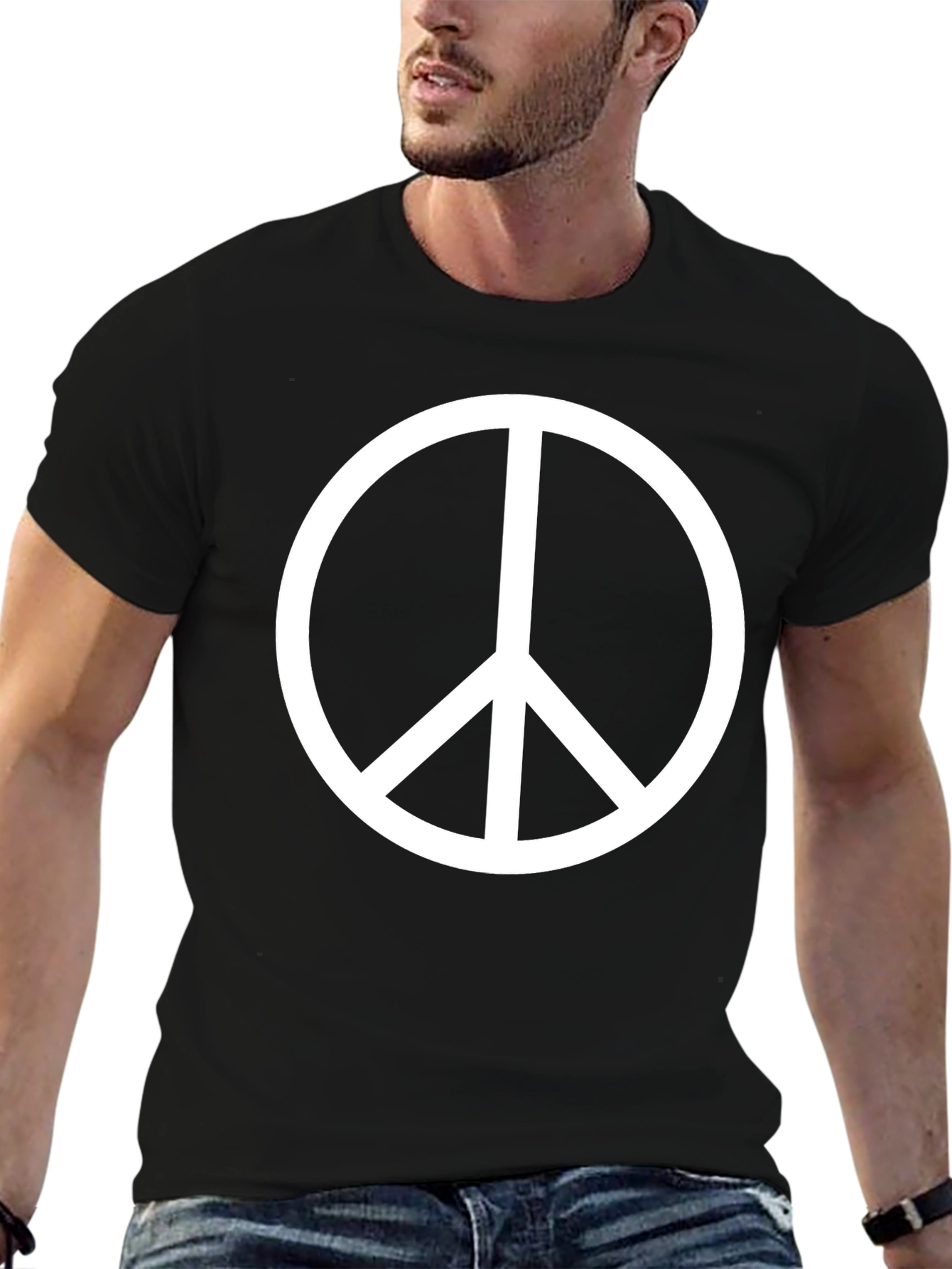Luce un estilo relajado y con un mensaje positivo con esta camiseta negra de manga corta. El diseño presenta un llamativo símbolo de la paz en color blanco que destaca sobre el fondo oscuro, ideal para expresar tu espíritu libre y optimista. Fabricada con materiales suaves y confortables, esta camiseta ofrece un ajuste cómodo y favorecedor para el uso diario. Perfecta para combinar con jeans, pantalones cortos o faldas, esta camiseta es una excelente opción para cualquier ocasión casual, desde salidas informales hasta eventos al aire libre. Demuestra tu apoyo a la paz y la armonía con esta prenda versátil y con estilo.