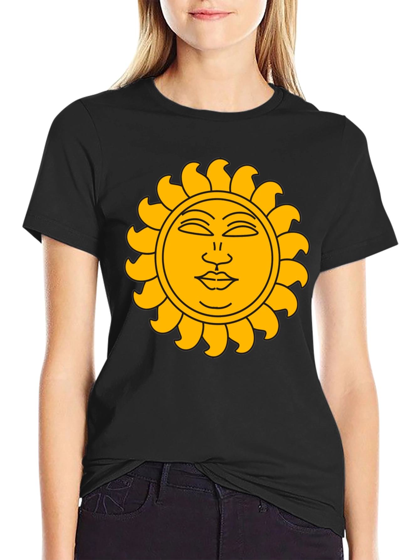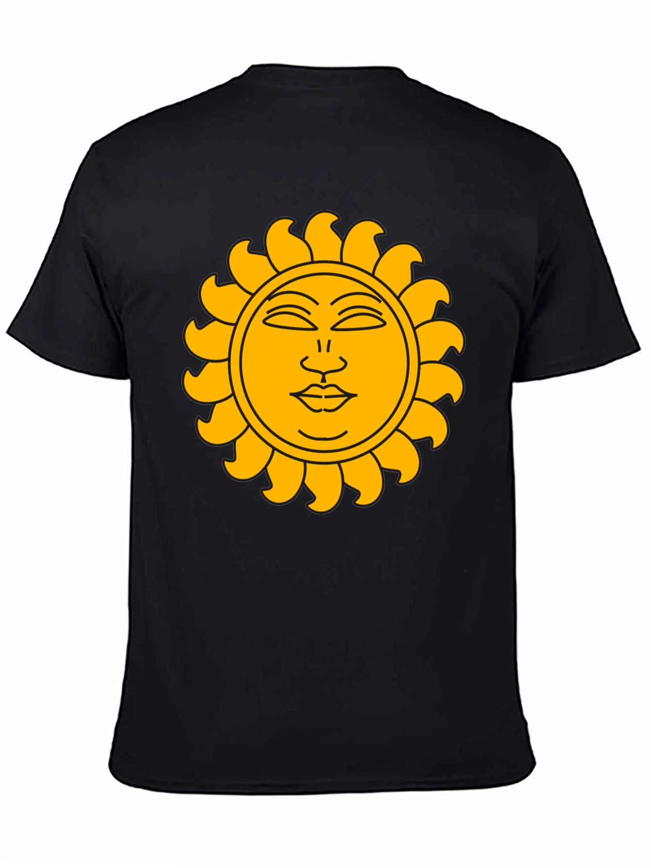 Luce un estilo único con esta camiseta negra de manga corta. Presenta un llamativo diseño de un sol dorado estilizado en el centro, con una expresión serena que atrae todas las miradas. Perfecta para expresar tu individualidad y añadir un toque artístico a tu vestuario diario. Elaborada con materiales suaves y cómodos, esta camiseta es ideal para cualquier ocasión casual. Combínala con jeans, pantalones cortos o faldas para un look moderno y relajado. Destaca entre la multitud con esta pieza original y versátil que refleja tu personalidad vibrante y creativa. ¡Un básico imprescindible en tu armario!