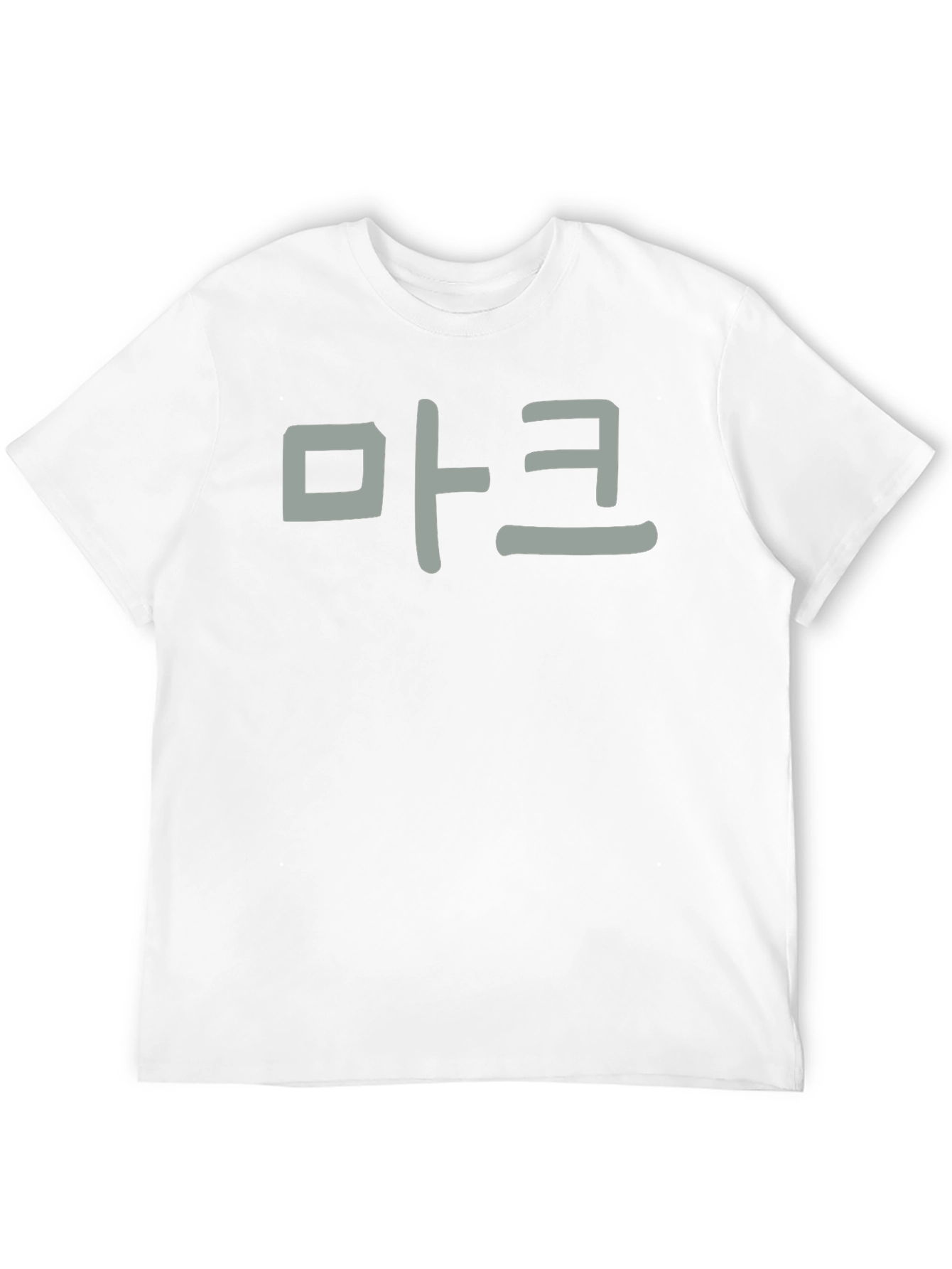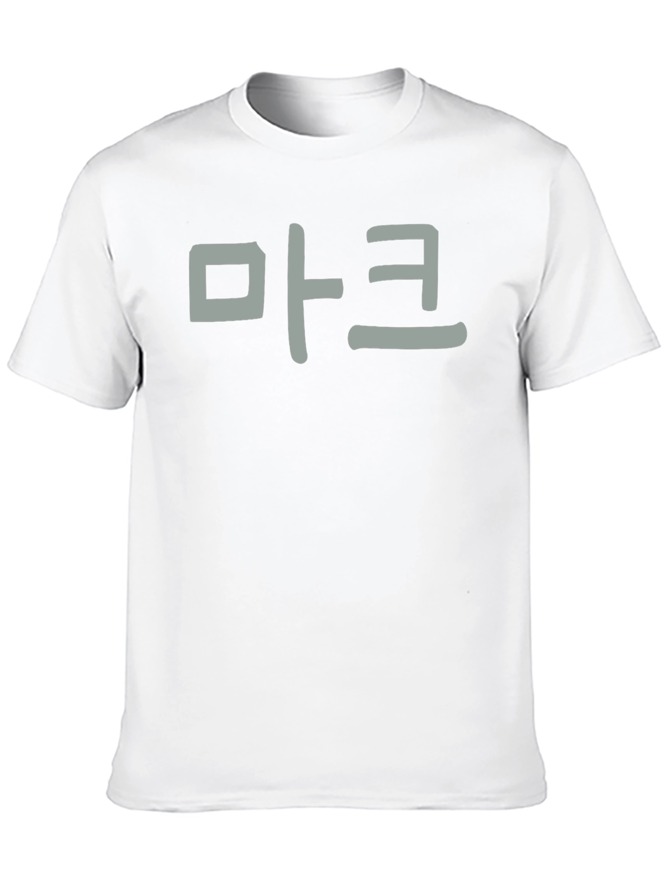 Esta camiseta negra presenta un diseño minimalista con la palabra '마크' (Mark) escrita en coreano en color gris. El tejido parece ser de algodón suave, lo que garantiza comodidad y transpirabilidad. Perfecta para expresar tu interés en la cultura coreana o simplemente para un look casual y moderno. Combina esta camiseta con jeans o pantalones cortos para un estilo relajado. Ideal para uso diario, salidas informales o como un regalo único para los amantes de Corea. Su diseño sencillo la convierte en una prenda versátil y fácil de combinar. Añade un toque internacional a tu armario con esta camiseta de tendencia.