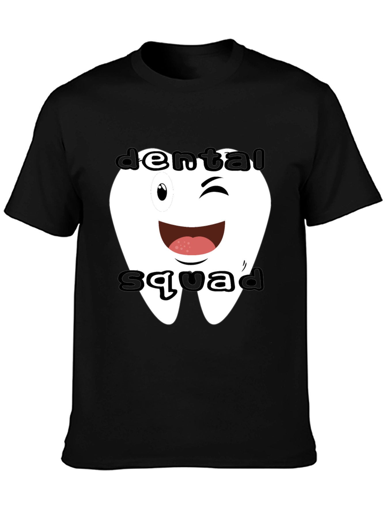 Muestra tu espíritu dental con esta divertida camiseta negra. Presenta un diseño llamativo de un diente animado guiñando un ojo, con las palabras "Dental Squad" estampadas con estilo. Perfecta para dentistas, higienistas y asistentes dentales que quieran añadir un toque de humor a su vestuario. Fabricada con un tejido suave y cómodo, esta camiseta es ideal para llevarla en la consulta, en eventos dentales o simplemente para el día a día. ¡Consigue ya tu camiseta Dental Squad y presume de tu profesión con una sonrisa!