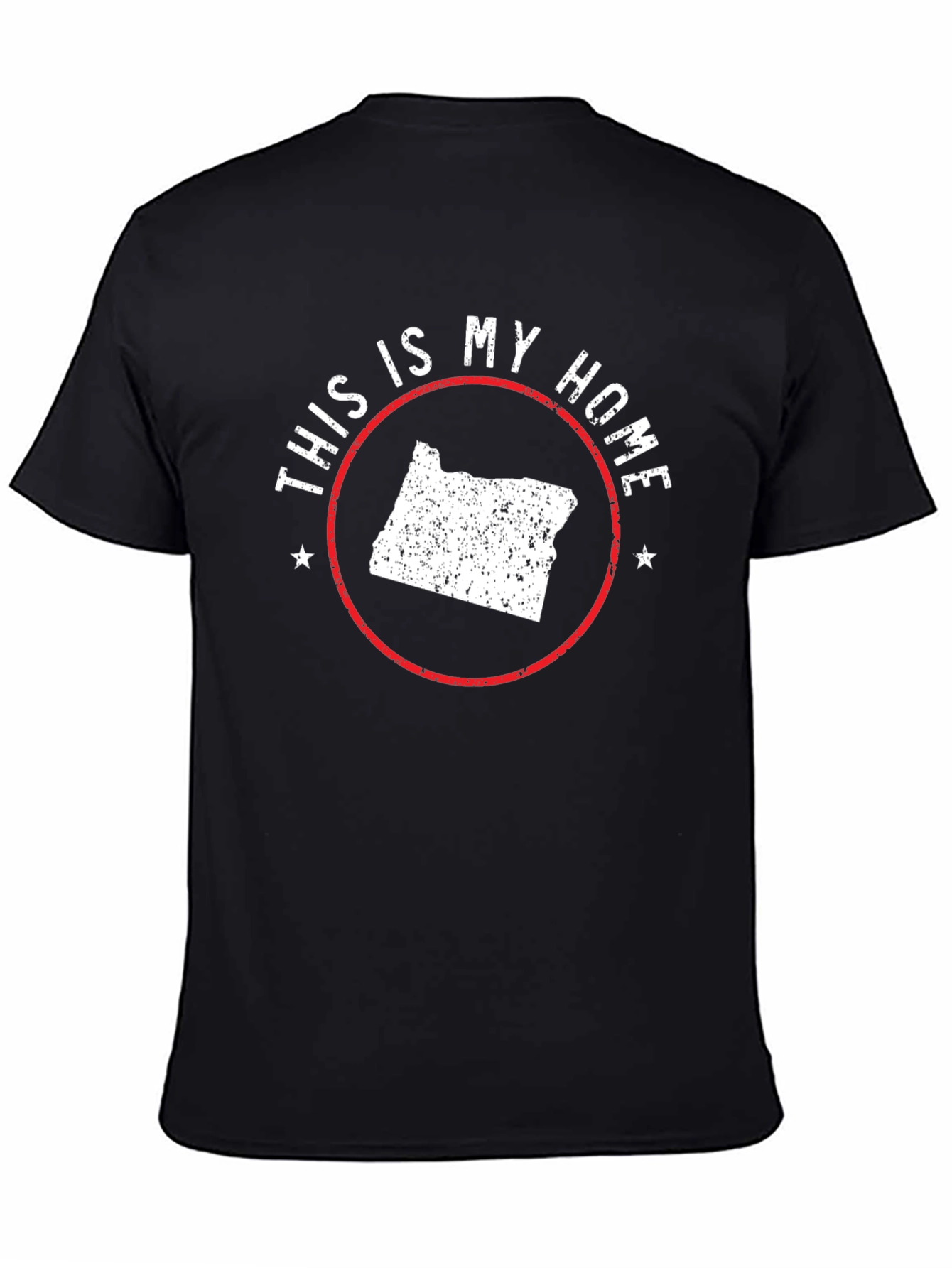 Muestra tu amor por Oregon con esta camiseta negra de manga corta. Presenta un diseño circular llamativo con la frase "THIS IS MY HOME" (Este es mi hogar) y una silueta blanca del estado de Oregon en el centro, enmarcada en un círculo rojo. Perfecta para mostrar tu orgullo estatal con estilo y comodidad. Ideal para usar en eventos locales, viajes o simplemente para expresar tu identidad. Fabricada con materiales de alta calidad para garantizar durabilidad y confort durante todo el día. Una prenda imprescindible para cualquier residente o amante de Oregon.