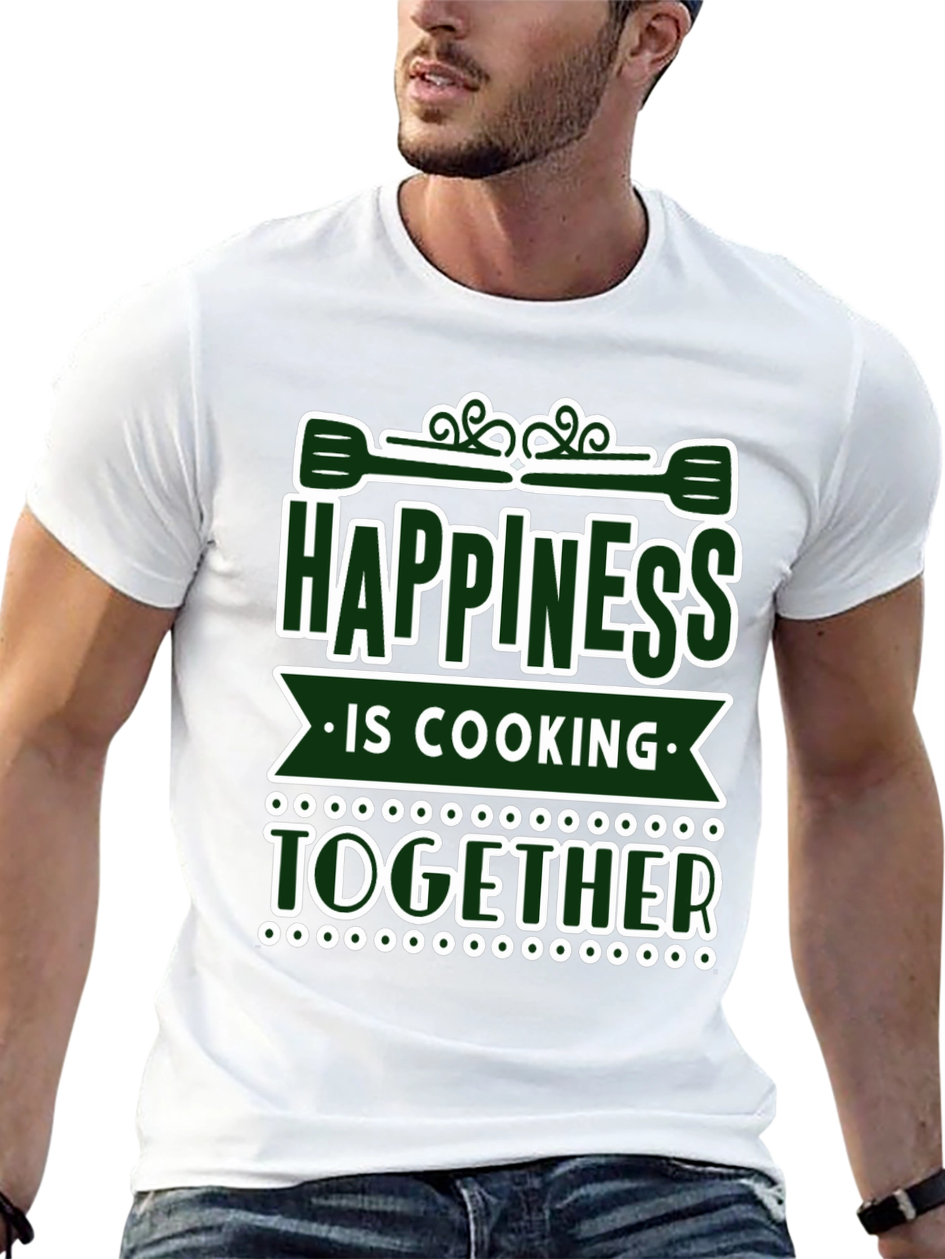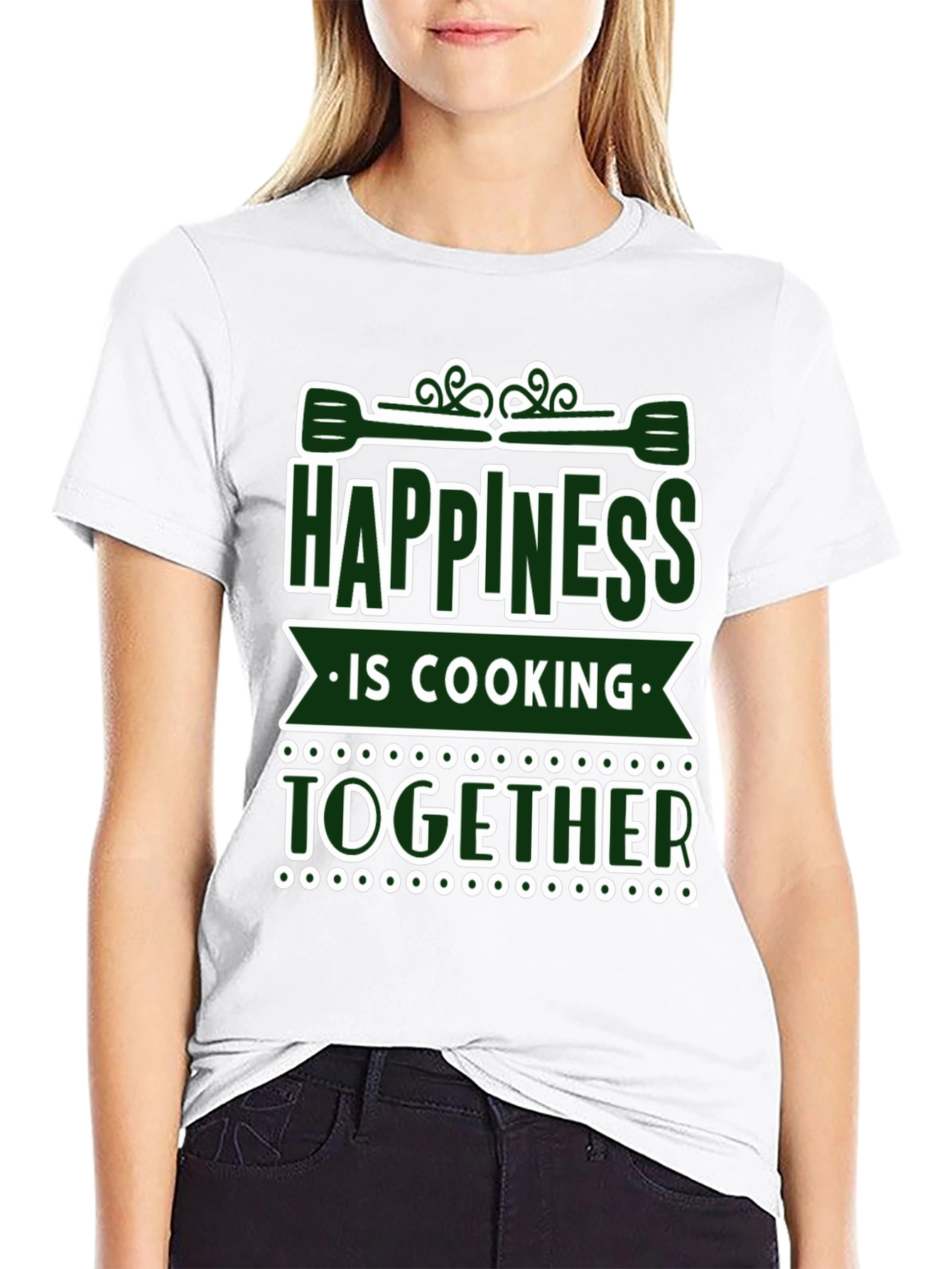 Luce esta atractiva camiseta negra con un diseño que celebra la alegría de cocinar en compañía. Presenta un llamativo estampado en color verde con la frase "HAPPINESS IS COOKING TOGETHER" adornada con utensilios de cocina. Su diseño sencillo y moderno la convierte en la prenda perfecta para lucir en la cocina o para cualquier ocasión casual. Fabricada con materiales de alta calidad, esta camiseta te ofrece comodidad y estilo. Ideal para regalar a ese amigo o familiar amante de la cocina.