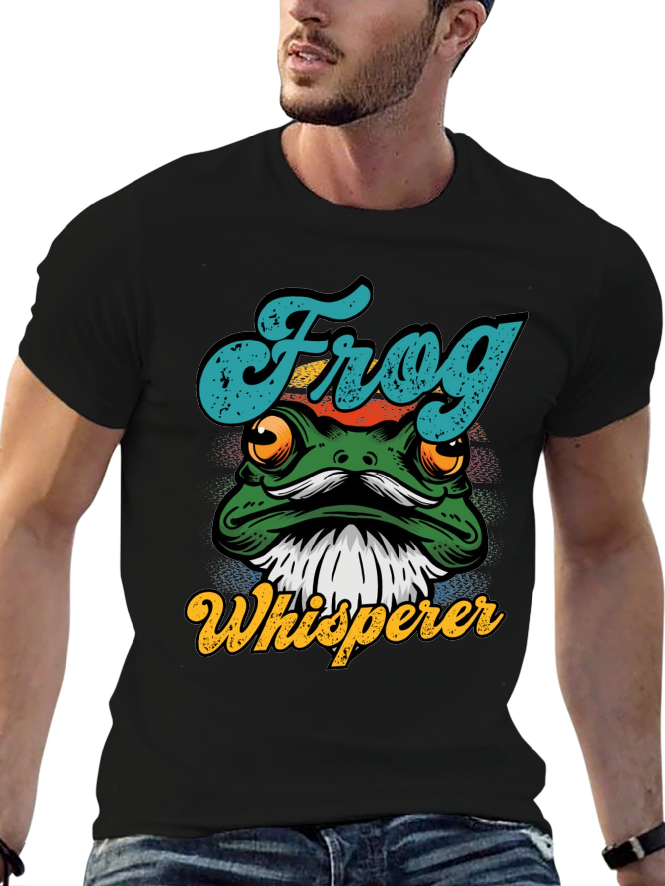 Luce esta original camiseta negra con un diseño llamativo y divertido. Presenta una ilustración de una rana con bigote, acompañada del texto "Frog Whisperer" en colores vibrantes. Perfecta para aquellos que aman la naturaleza y tienen un sentido del humor único. Ideal para uso diario, eventos informales o como un regalo original para amigos y familiares. Su diseño destaca por los colores vivos y el estilo desenfadado, lo que la convierte en una prenda versátil y atractiva. Fabricada con materiales cómodos y duraderos para garantizar un uso prolongado.