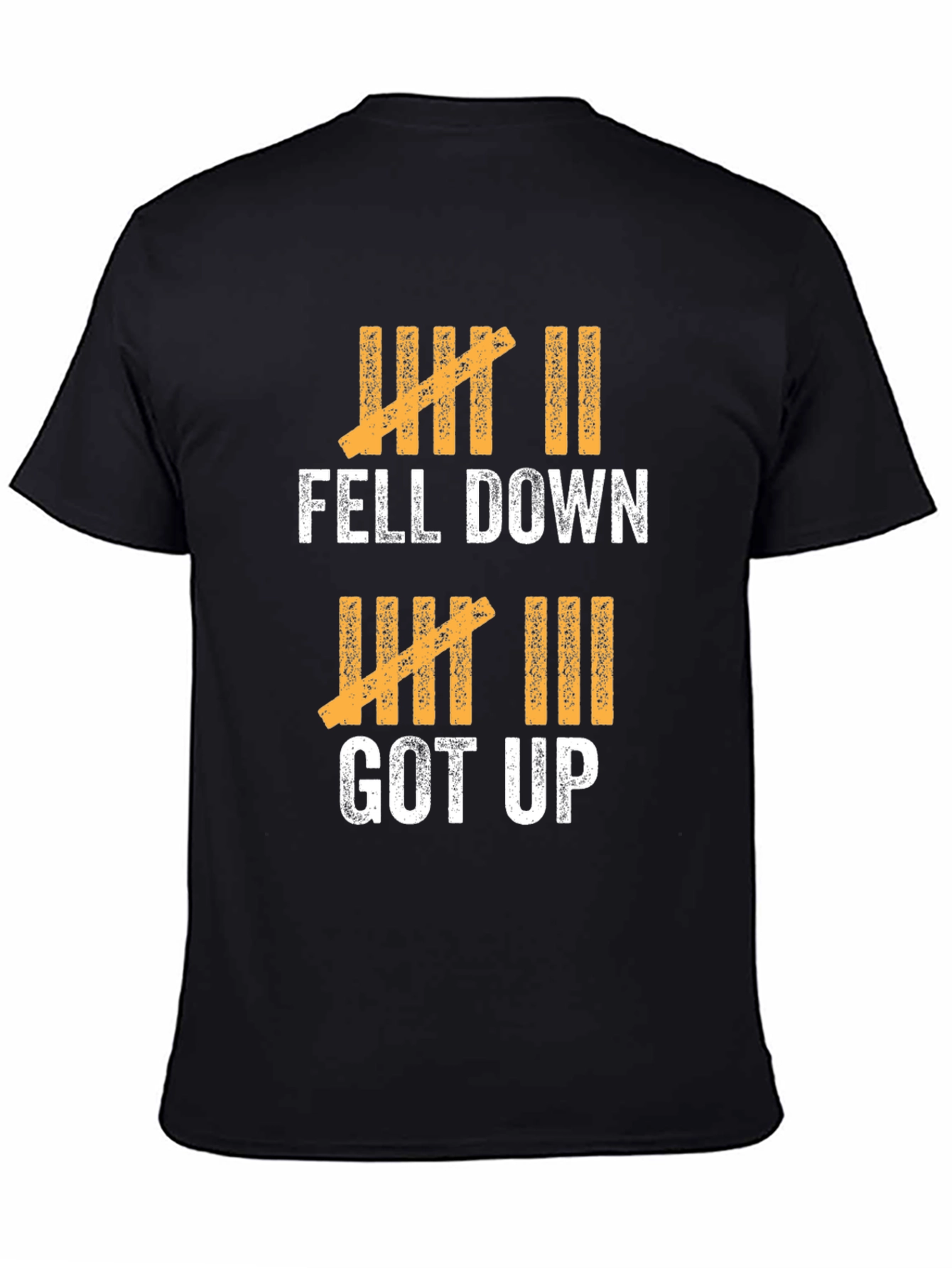 Luce esta camiseta negra de algodón con un diseño motivacional. La frase "Me Caí, Me Levanté" está impresa en letras blancas con un estilo ligeramente desgastado, dándole un toque vintage. El diseño se complementa con marcas de conteo en color amarillo, añadiendo un elemento visual llamativo. Ideal para uso diario, esta camiseta es perfecta para expresar una actitud resiliente y positiva. Su corte clásico y tejido suave garantizan comodidad durante todo el día. Ya sea para un atuendo casual o para combinar con otros estilos, esta camiseta te hará destacar con un mensaje inspirador.