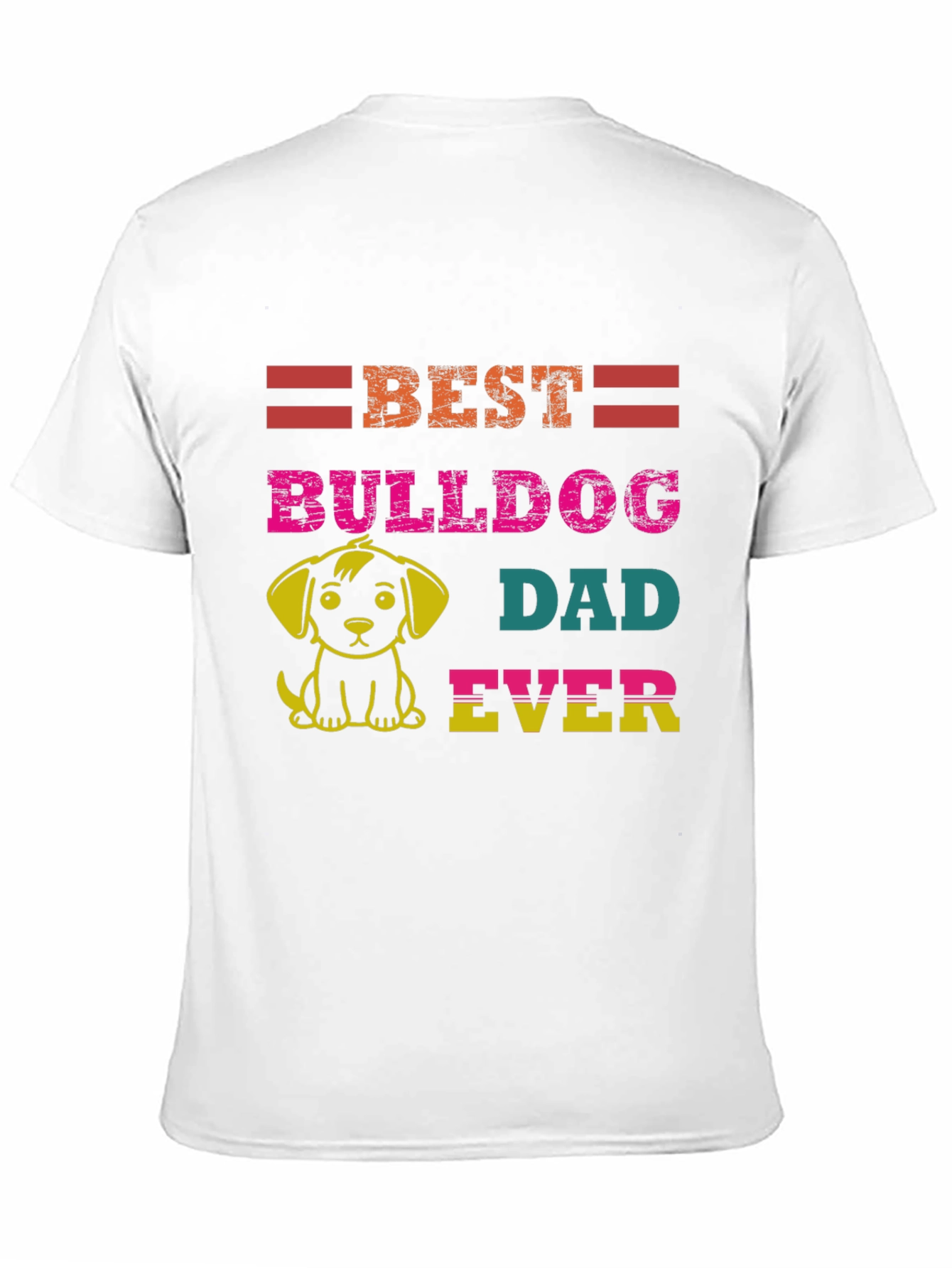 Muestra tu amor por los bulldogs con esta camiseta negra de manga corta. Presenta un diseño llamativo con la frase "Best Bulldog Dad Ever" en colores vibrantes: naranja, rosa, verde azulado y amarillo. El simpático dibujo de un cachorro de bulldog añade un toque adorable. Perfecta para usar a diario, paseos con tu mascota, o como un regalo especial para el orgulloso padre de un bulldog. Fabricada con materiales cómodos, ideal para lucir tu pasión por los bulldogs con estilo.