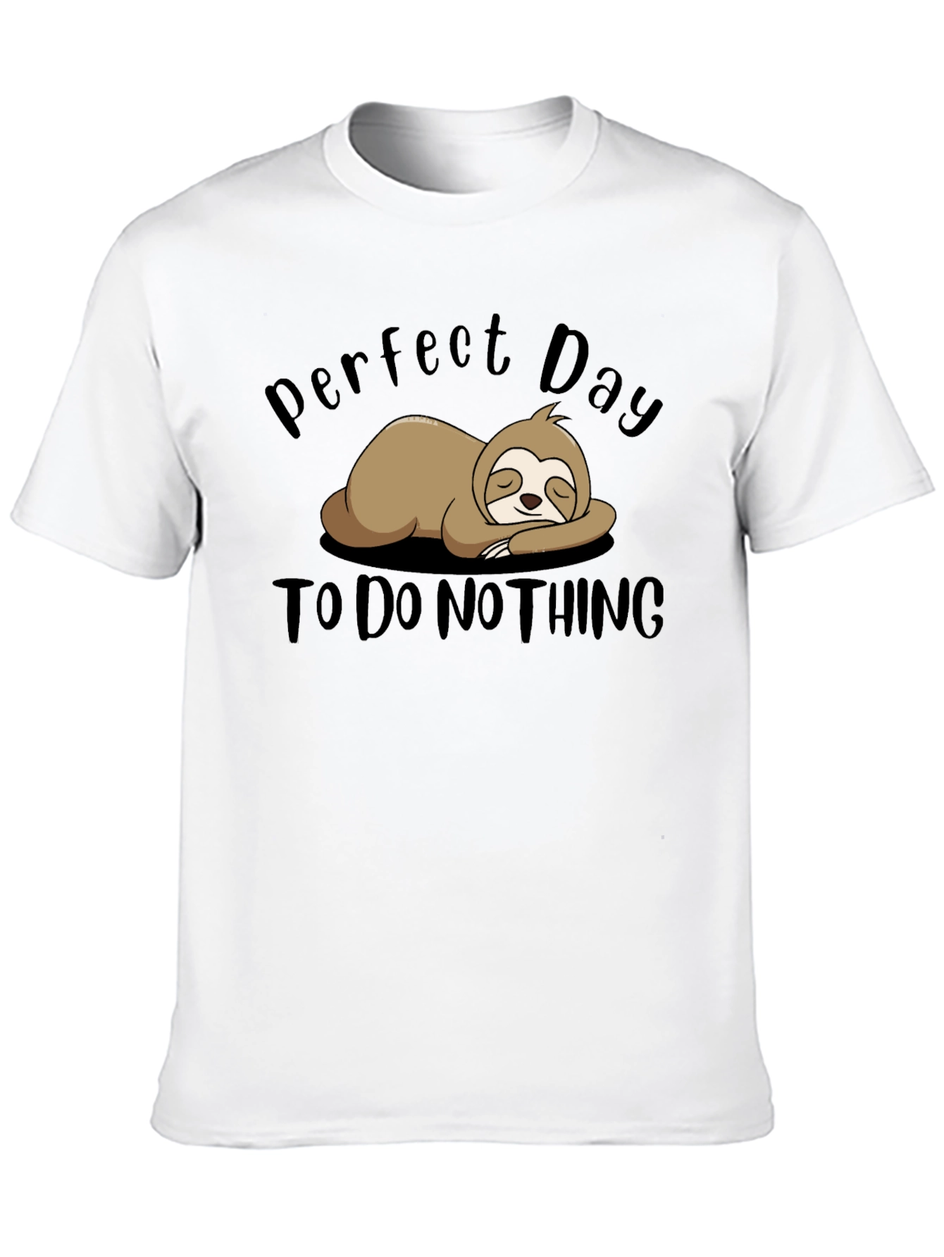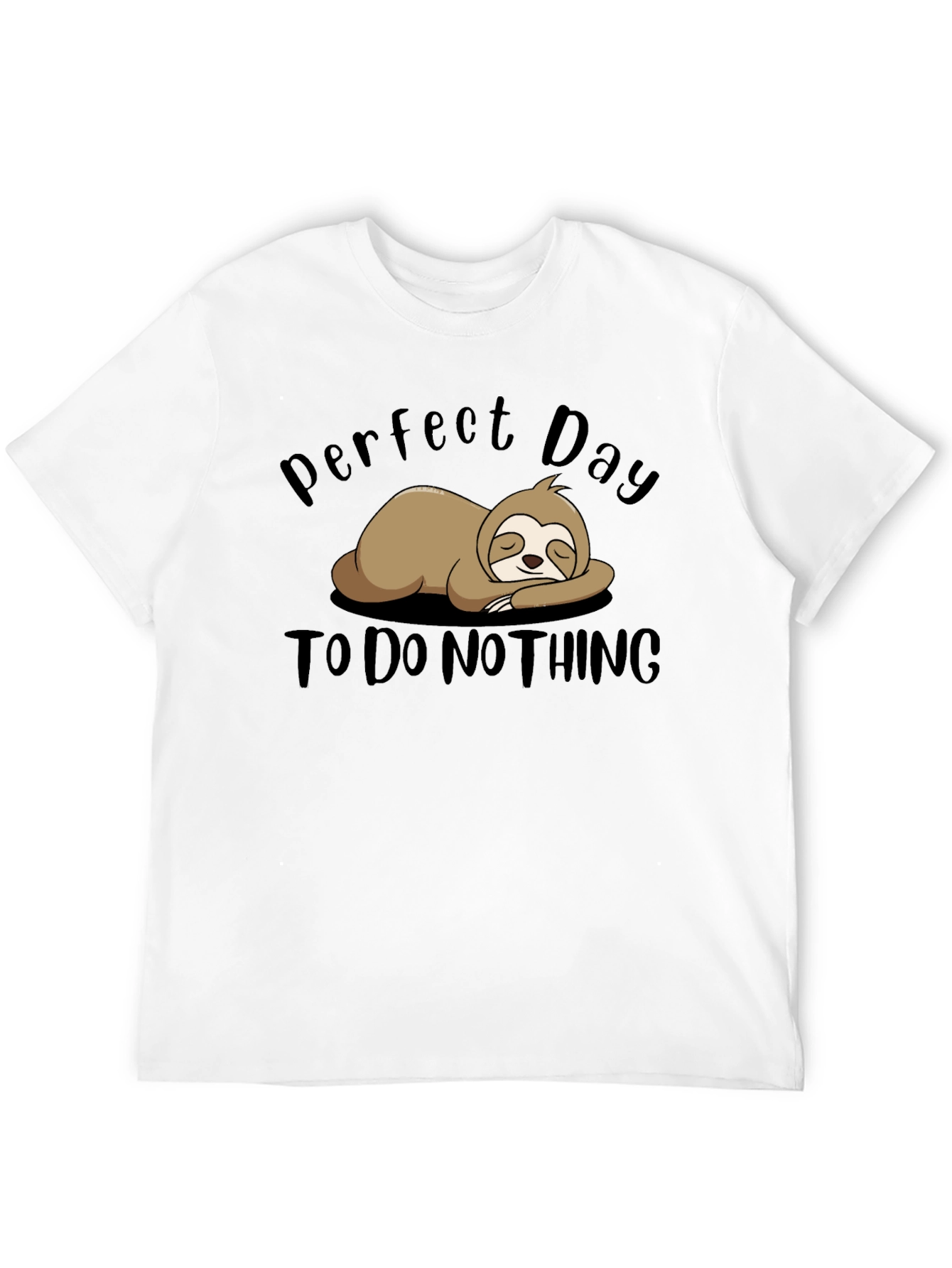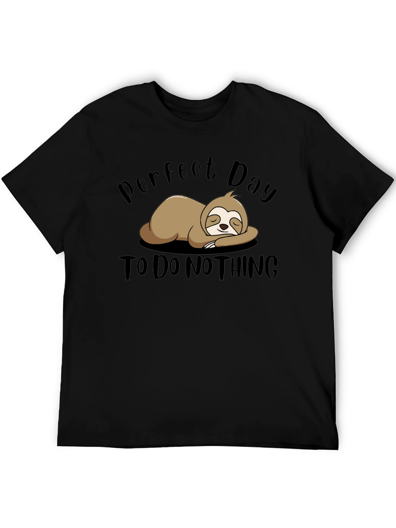 Disfruta de un día de descanso con esta cómoda camiseta negra. Confeccionada en tela suave, esta camiseta presenta un diseño divertido de un perezoso durmiendo y la frase "Perfect Day To Do Nothing". Ideal para esos días relajados en casa o para un look casual y desenfadado. Su diseño único te permitirá destacar con estilo y un toque de humor. Perfecta para combinar con tus jeans o pantalones favoritos. ¡Consigue la tuya y prepárate para disfrutar de un día de pura relajación!