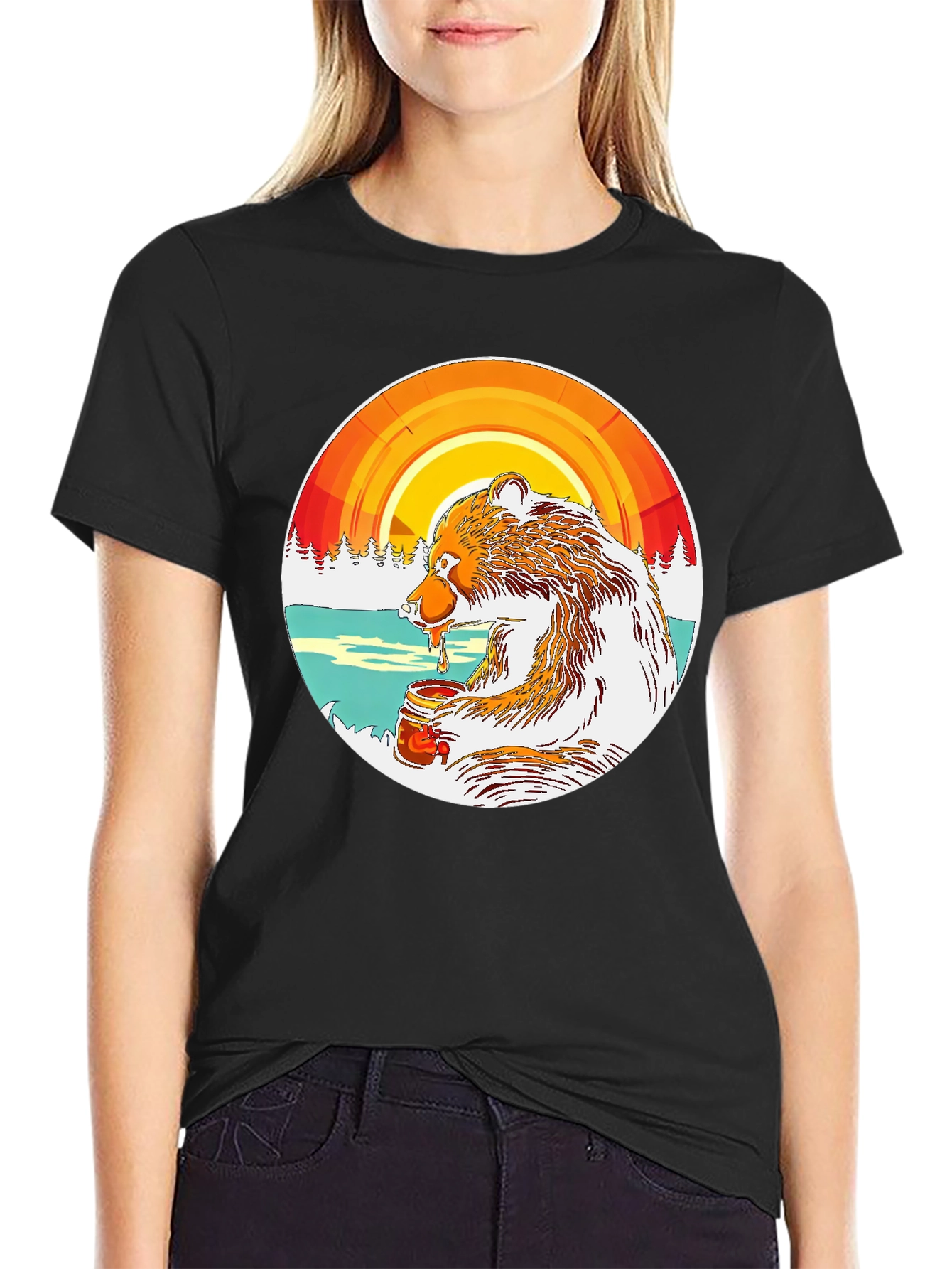 Camiseta Oso Comiendo Miel con Diseño Circular